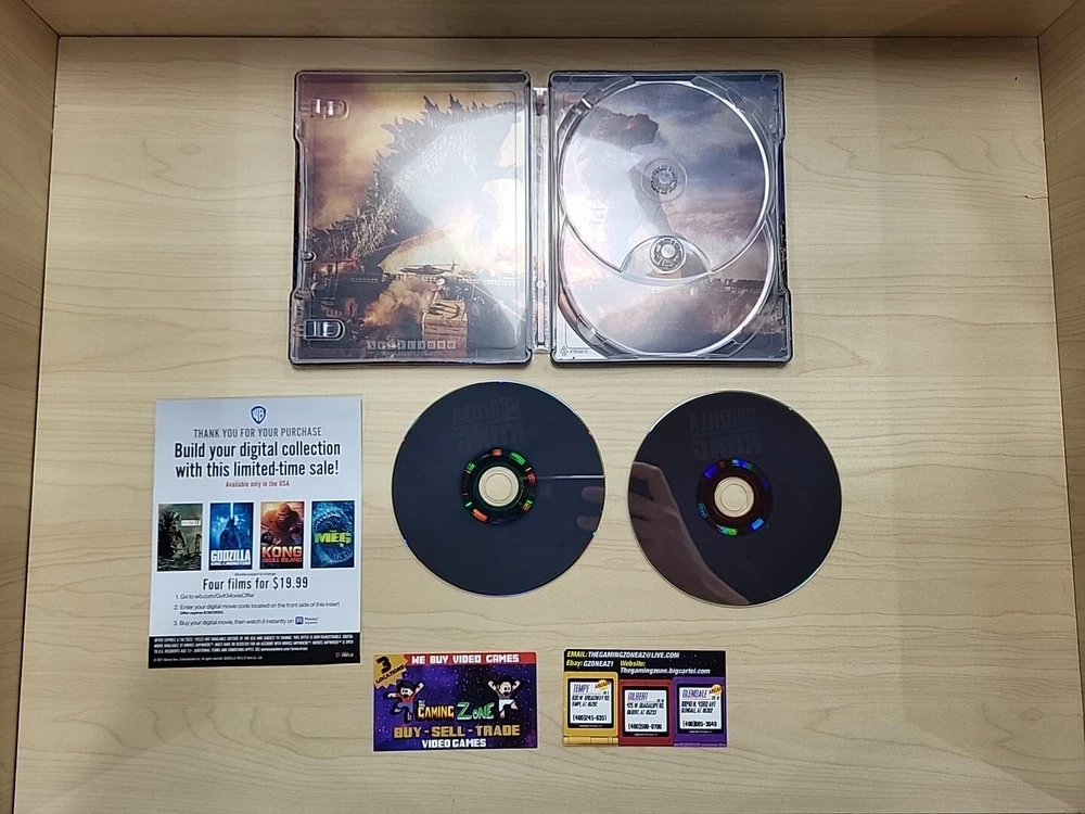 Like new Godzilla Vs Kong 4K Blu-ray DVDs Steelbook. Everything is in like new condition with no signs of wear or scratches. It will come with all original contents including the 2 Blu-ray discs and the limited edition steelbook. No extra accessories will be included. Buy with confidence. If you have any questions please contact us. Thank you for your business. Make sure to check out our online store here in Ebay. We upload new inventory on a daily basis. In Arizona? Come visit one of our three retail stores, located in Tempe, Gilbert, and Glendale!