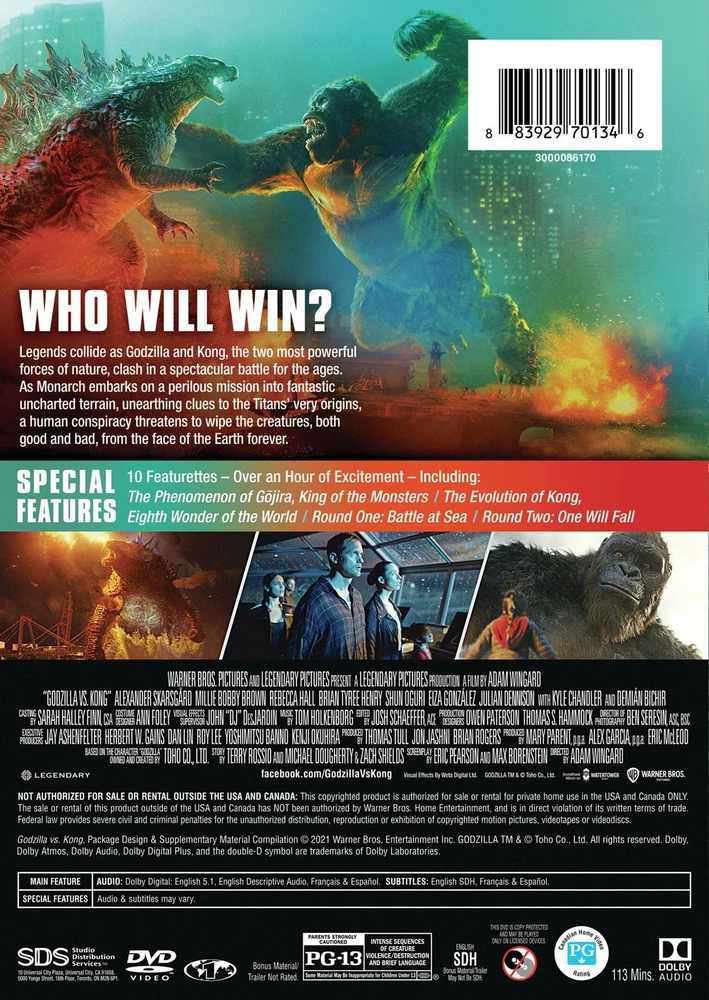 Godzilla Vs Kong DVD Alexander Skarsgård NEW Product | GRUV Home DVD Blu-ray 4K Gruv > Godzilla Vs Kong DVD Alexander Skarsgård NEW [Back] Godzilla Vs Kong DVD Alexander Skarsgård NEW Legends collide as Godzilla and Kong, the two most powerful forces of nature, clash in a spectacular battle for the ages. As Monarch embarks on a perilous mission into fantastic uncharted terrain, unearthing clues to the Titans' very origins, a human conspiracy threatens to wipe the creatures, both good and bad, from the face of the earth forever. Product Godzilla Vs Kong (Special Edition) [DVD] Format: DVD Catalogue No: 1000750721 Studio: Warner Certification: PG-13 Release Date: 06/15/21 Region: Region 1 Duration: 113 minutes Discs: 2 Color: Color Extras: Language(s): English|Interactive Menu Shipping *** FREE SHIPPING ON ALL ORDERS *** All items ordered before 11:00am EST will be shipped on the same day. Items ordered after 11:00am EST will be shipped on the following day. Orders placed after 11:00am EST on Friday will be shipped on the following Monday. If you have any questions regarding your order, please contact us How will I know when my order has been shipped? As soon as your order is sent from our warehouse you will be sent an email to confirm that it's on its way. Once my order has been shipped when will I receive it? Depending on your method of shipping, your timing will vary: Economy Shipping - you will receive your order in 3-10 days Expedited Shipping - you will receive your order in 1-5 days Next Business Day - you will receive your order in 1 Business day. This service is only available on orders placed Monday through Thursday The timeliness of service to destinations outside the contiguous U.S. may be affected by the limited availability of transportation. Due to the variability of transportation, Package Services and USPS Mail packages may take up to two to five weeks to reach Hawaii, Alaska, Puerto Rico and any U.S. Territories. This includes ZIP Codes with prefixes of 967 and 969 and those with the following prefixes: 995, 996, 997, 998, 999, 968, 006, 007, 008, and 009 Do you charge for shipping? *** FREE SHIPPING ON ALL ORDERS *** Economy Shipping - USPS Media Mail - FREE - 3 to 10 business days Expedited Shipping - FedEx Ground - $5.99 - 1 to 5 business days Next Business Day - FedEx Overnight - $14.99 - 1 business day PLEASE NOTE THAT ORDERS PLACED USING FEDEX CANNOT BE DELIVERED TO PO BOXES What do I do if I have not received my order? If your order does not arrive within 14 days please contact us so that we can investigate with the delivery company. One of the items is missing from my order. What do I do? Sometimes items that are purchased on the same order may arrive to you on different days. We will send you an email to let you know when each item is on its way. What happens if I am not at home to accept my delivery? Most of our products do not require you to be at home to be delivered. In the event that you have ordered products which will not fit in your mailbox, and you are not home to accept the delivery, then the postal service will follow their usual procedure. This usually means a card is left to notify you of an attempted delivery and the item will be held at your local sorting office. For items sent via FedEx, a card should also be left to allow you to arrange a redelivery or collection. Which countries do you deliver to? We deliver to the United States and US territories. Do you deliver on Public Holidays? Holidays are not considered working days, so we don't include these in our estimated delivery times. In this instance you should expect delivery on the next working day following the Holiday. Returns Here at GRUV Entertainment we want you to be 100% happy with your purchase, and we'll do everything we can to make sure you are. If you would like to return a product to us, please contact us. How do I return an item? To arrange a return please contact us and we will be more than happy to arrange this for you. All you need to tell us is which items you wish to return and the reason why. We will then issue you a unique Returns Authorization (RA) number and the return instructions. I have received my item, but I no longer want to keep it? If you are unhappy with your purchase, please contact us within 30 days of receiving the item for a full refund - please note that DVDs, Blu-rays & 4K Ultra HD that have been opened or have had their shrink-wrap removed are not eligible for return. The cost of shipping to return a product you no longer require will be paid for by the person returning the product and will require a Returns Authorization (RA) number. The RA number will be given to you by our customer services team. I have received my item but it's damaged / faulty. What should I do? If your item arrived damaged or is faulty, we will make this right as soon as possible, either by sending a replacement item to you or refunding your account. If we ask for the item to be returned to us, then GRUV Entertainment will pay for the cost of the return via a pre-paid label. In the unlikely event that your order is received damaged or faulty, all you need to do is contact us within 30 days of receiving the item and we will provide you with the relevant returns information. I have received an item that I did not order. What should I do? If you received an item that you did not order, you can return it to us within 30 days of receiving it for a full refund or replacement. If we ask for the item to be returned to us, then GRUV Entertainment will pay for the cost of the return via a pre-paid label. When will I receive my refund/replacement? We will process your refund / replacement as soon as your item is received back into our warehouse. Replacements are subject to availability and, if not available, a refund will be given instead. Where possible please retain the packaging that your original order arrives in as you can use it to return the items to us.