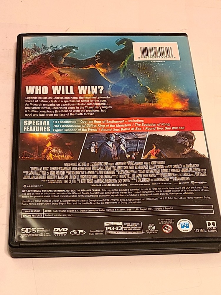The product is a special edition DVD of the movie "Godzilla vs. Kong", directed by Adam Wingard and released in 2021 by Warner Home Video. This 2-disc set includes the film along with a lot of 2 additional DVDs, making it a great value for fans of the franchise. The DVD format and region code of 1 ensure compatibility for US viewers, and the movie falls under the genres of science fiction and horror, with a PG-13 rating for a cautionary audience.