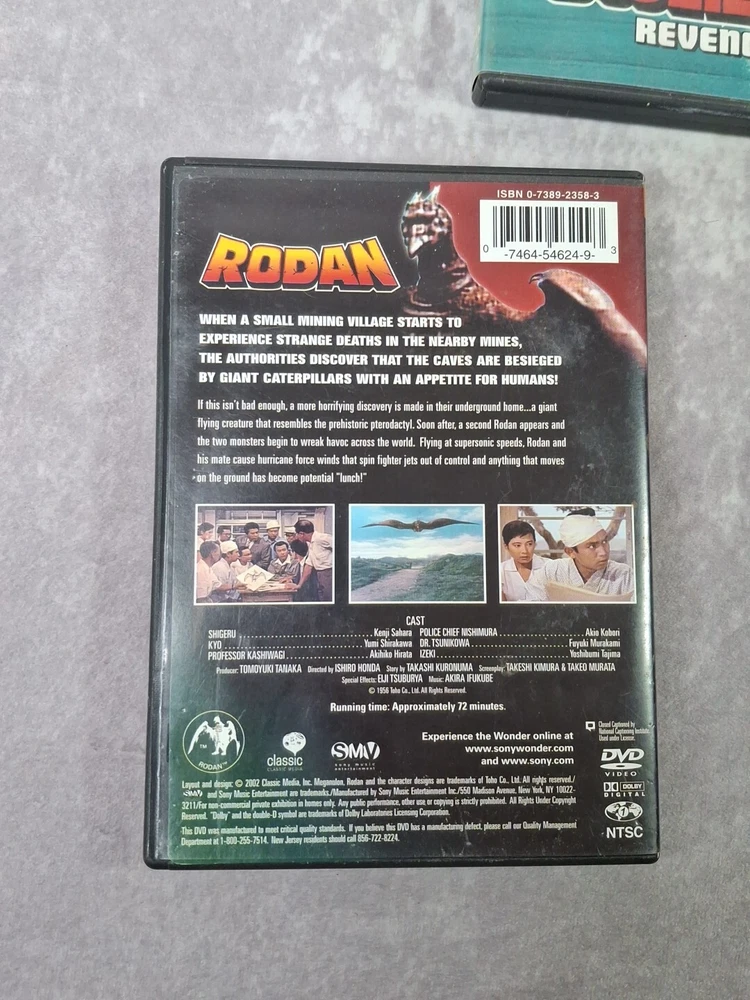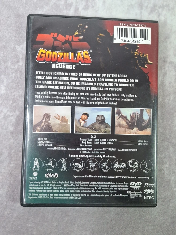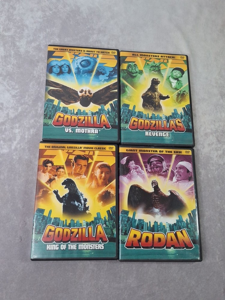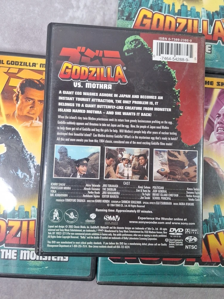The product is a DVD lot featuring four classic Godzilla movies: "Godzilla Vs. Mothra," "Godzilla's Revenge," "Godzilla King Of Monsters," and "Rodan." The movies fall under the horror genre and were released in 1964. The total run time of the DVDs is 87 minutes. The studio responsible for the DVD release is Sony Wonder (Video).