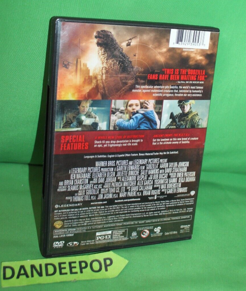 Godzilla DVD Movie. Has typical surface play scratches and case has wear, any codes may not be viable. May Or May Not Match Stock information or photos. See my store categories for many other items. Find this in my Movies category Payments must be received within 3 days of auction end . ALL Movies, Books And Cd's Half OFF Just Add 4 Or More To Cart At Asking Prices Offers Do Not apply. No Limits, Mix And Match Storewide . ORSAPL23BX3 071623 View more great items Please note there are severe delays especially involving USPS due to restrictions This is out of my control. I ship right away, however there are no guarantees of when your items will be received. Please message me prior with any questions. Special Ongoing Promotion Buy 2 Get 1 Free Storewide Sale Add Any 3 Items To Cart At Asking Prices One Will Be Free. No Limits Offers Do Not Apply. Mix And Match SEE MY MOVIES COMPLETE LIST HERE