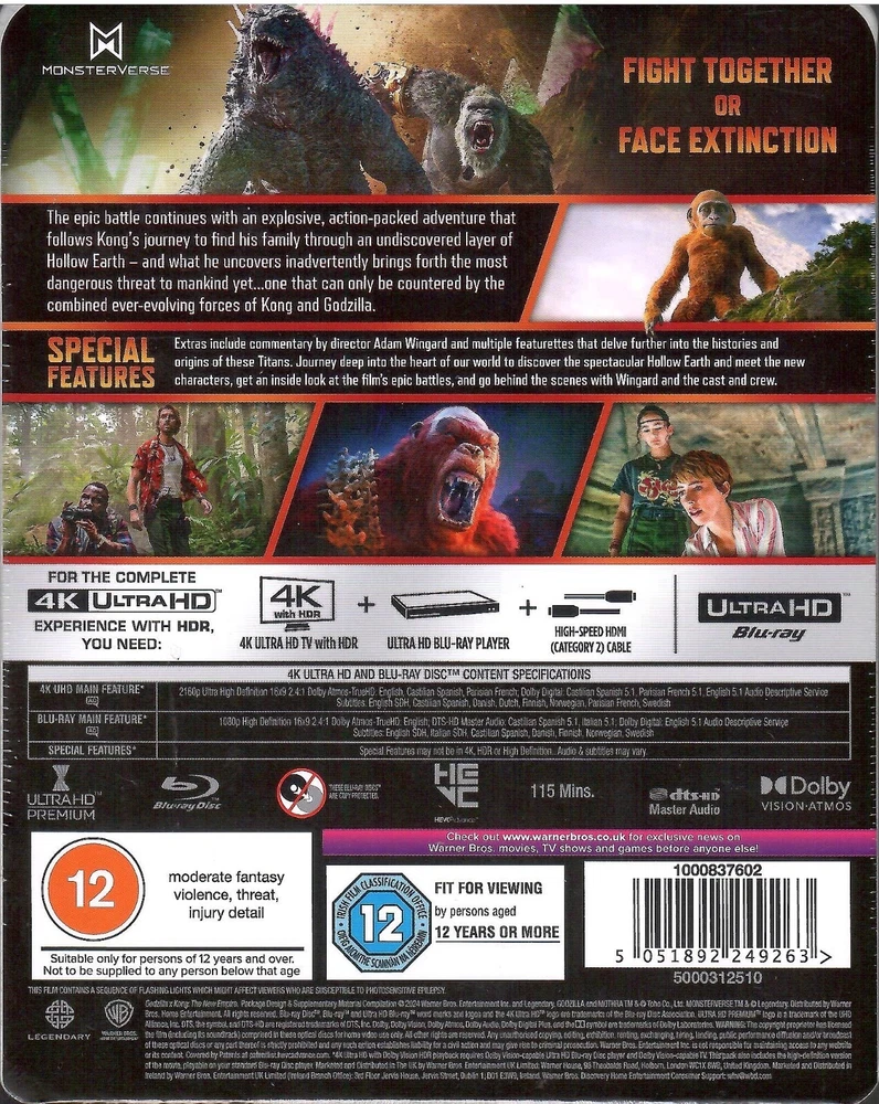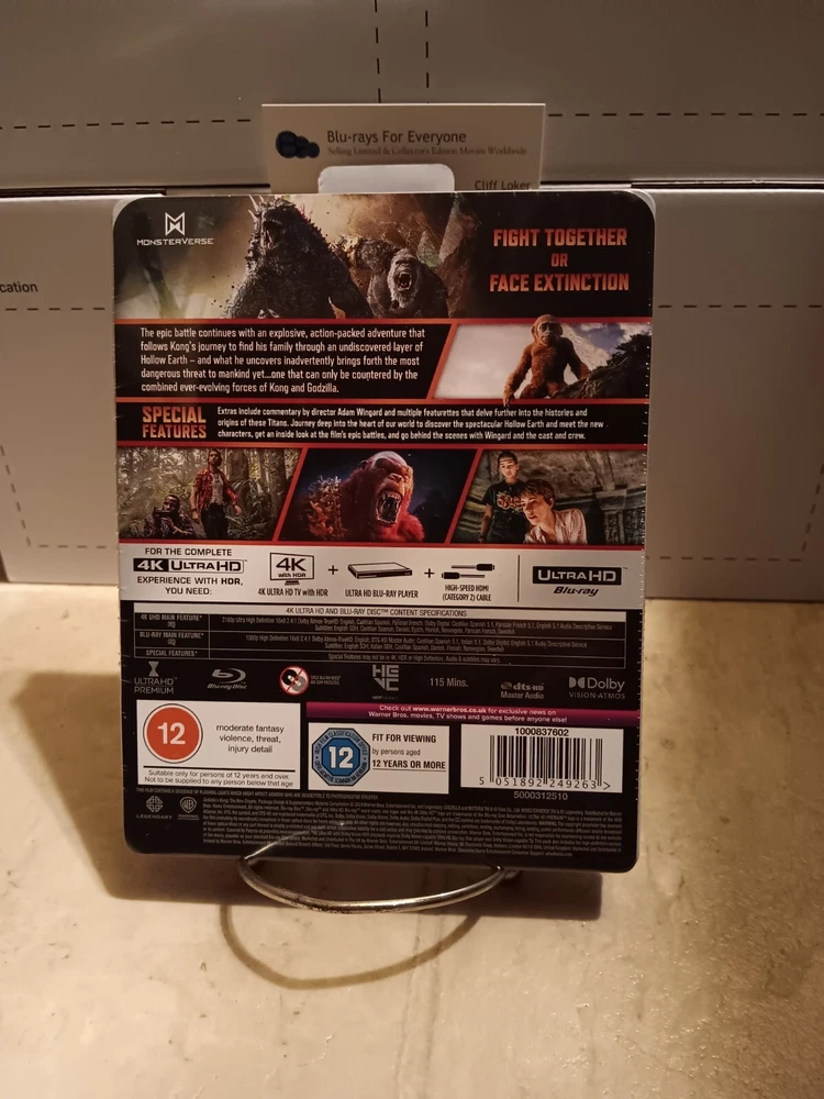 Godzilla X Kong: The New Empire 4K SteelBook (UK)(4K Blu-ray/Blu-ray) No Dents, Loose Disc or a Spine Slash (Before Opening) Customs Friendly - Combined Shipping for All Countries (Look Below) UK Version - Region Free - Ships in a Box - Ships Next Day This is for Godzilla X Kong: The New Empire 4K SteelBook from UK. This includes the 4K & blu-ray disc of the film in a SteelBook case. (All 4K discs are Region Free) There are no dents on the SteelBook as far as I can see. Due to being unopened I can't be responsible for any damage once item is opened. Please inspect SteelBook before opening. This also comes with a SteelBook protective case. These discs are the UK version but may also contain audio and subtitles for other languages. If there are no details below contact me to find out. I am willing to ship anywhere in the world. This will be shipped in a box for protection and all shipments come with a tracking number . Combined Shipping for all Countries for additional items purchased (Please contact after purchase) Remember To Look At My Other Items!