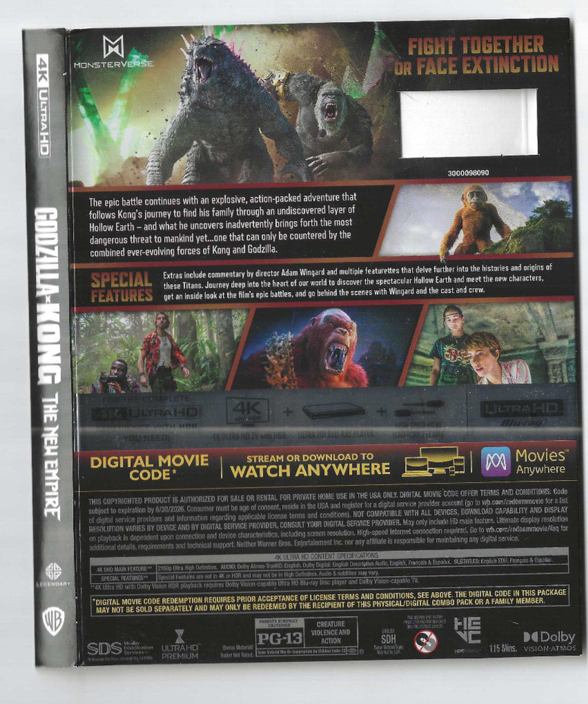 Further Details Title: Godzilla X Kong: The New Empire Condition: New Description: The epic battle continues with an explosive, action-packed adventure that follows Kong's journey to find his family through an undiscovered layer of Hollow Earth - and what he uncovers inadvertently brings forth the most dangerous threat to mankind yet... one that can only be countered by the combined ever-evolving forces of Kong and Godzilla. Actor: Alex Ferns, Dan Stevens, Rachel House, Greg Hatton, Brian Tyree Henry, Fala Chen, Kaylee Hottle, Ron Smyck, Chantelle Jamieson, Rebecca Hall Format: 4K UHD Blu-ray Director: Adam Wingard Genre: Action & Adventure Rating: 12 Studio: Warner Bros. Home Ent. Language: English, Spanish-Castilian, French-Parisian No Of Discs: 1 EAN: 5051892246767 MPN: 1000834922 Release Date: 06/24/2024 Subtitle Language: Hard of Hearing English, Spanish-Castilian, Danish, Dutch, Finnish, Norwegian, French-Parisian, Swedish Run Time: 115 minutes Region Code: Blu-ray: Region Free Release Year: 2024 Missing Information? Please contact us if any details are missing and where possible we will add the information to our listing.