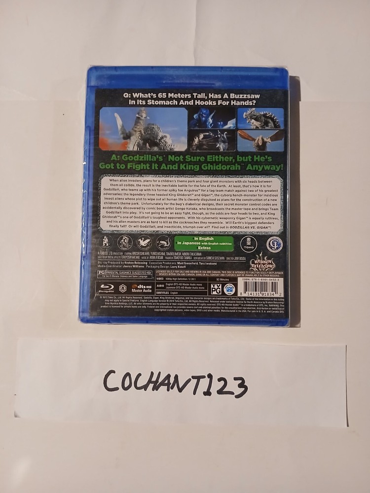 "Godzilla Vs. Gigan\" (1972) Blu-Ray OOP New Sealed is a must-have for fans of the Godzilla franchise. Directed by Jun Fukuda and starring Tomoko Umeda and Hiroshi Ishikawa, this sci-fi and fantasy film features epic battles between creatures and monsters on Monster Island. With a PG rating and available in NTSC video format, this Blu-ray edition boasts widescreen visuals and dual language options in English and Japanese, making it a comprehensive addition to any movie collection." "Packaged in a classic Blu-ray case, this rare and out-of-print release from Toho Studio offers a high-quality viewing experience with its 16:9 aspect ratio. Released in 2014, Godzilla Vs. Gigan is a thrilling addition to the iconic Godzilla series, perfect for fans of the genre looking to delve into the epic world of kaiju battles and monstrous adventures."