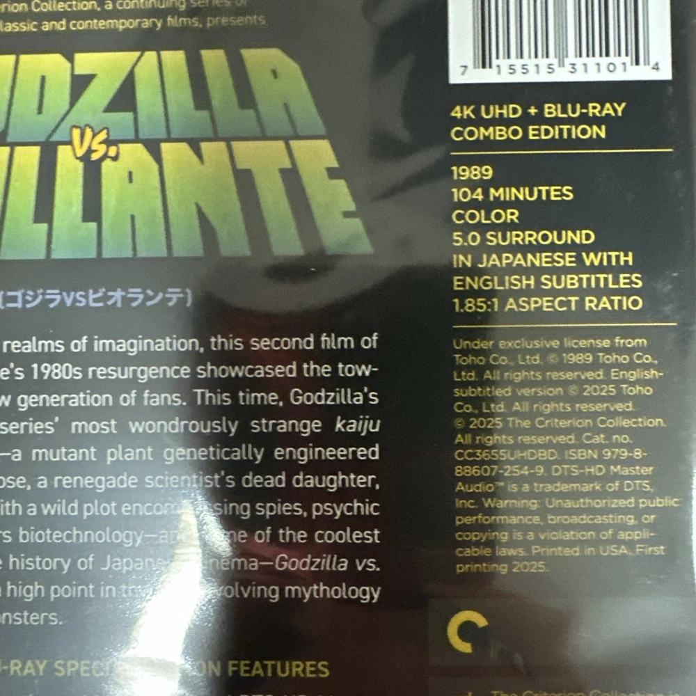 | Movie/TV Title | Godzilla vs. Biollante (Criterion Collection) |