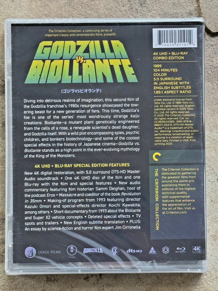| Movie/TV Title | Godzilla vs. Biollante (Criterion Collection) |