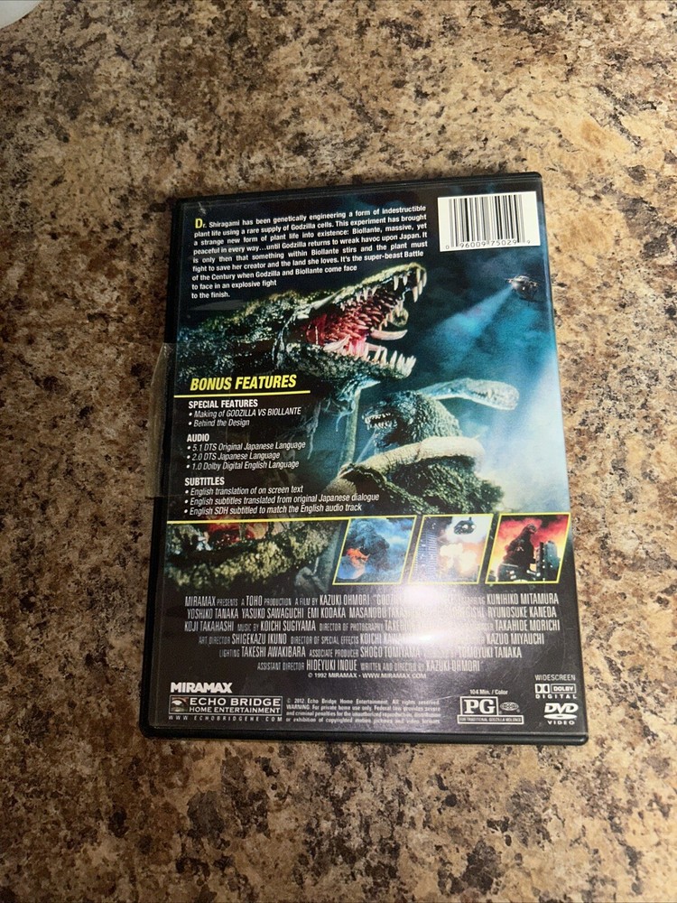 This rare DVD features the epic battle between Godzilla and Biollante, released in 2012 by Miramax. The movie title is a must-have for fans of the iconic Godzilla franchise, and the DVD format ensures that you can enjoy the film in the comfort of your own home. The studio behind the film is Miramax, known for their high-quality productions. The DVD is a great addition to any movie collection and is sure to impress fans of Godzilla vs. Biollante. Don't miss out on the opportunity to own this out-of-print DVD. Purchased new and watched a couple of times. Please see pics for condition of disc. Shipping is actual and based on buyer location