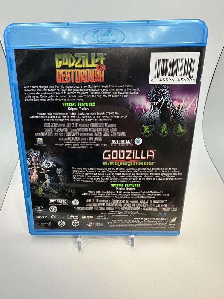 Up for sale 3 Godzilla movies. Godzilla 2000, Godzilla Vs Destroyah & Godzilla Vs. Megaguirus. 2014 Toho Collection