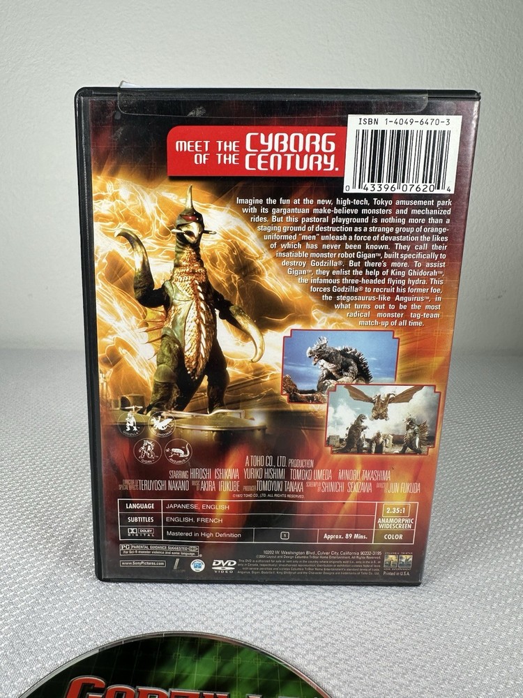 | _desc_ | Originally produced in 1972, this Godzilla film is among the best loved for its funny quirks and quintessential moments. Godzilla battles the chicken-headed space monster, Gigan, and a host of other evil alien creatures. The film's high point is a dynamic extended fight sequence between Godzilla, Gigan, Angurius, and King Ghidorah. All of the elements that have made Godzilla a favorite are here: actors dressed in rubber monster suits, stock film footage, and goofy characters that are an afterthought to the charismatic giant reptiles. |