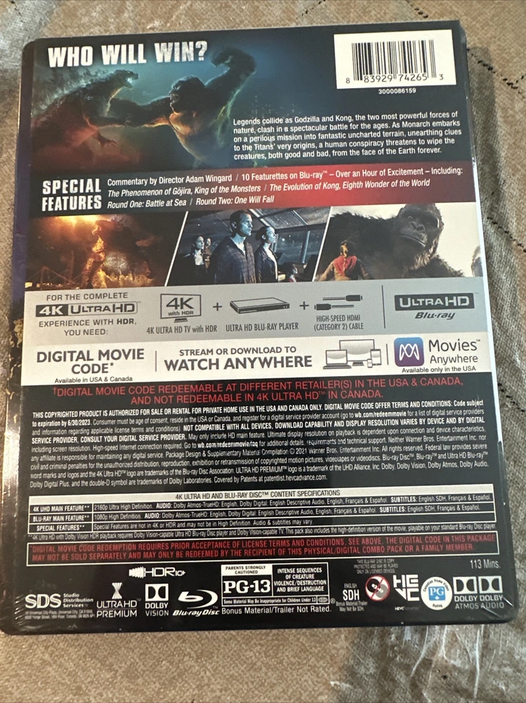 Godzilla vs Kong 4K steelbook Best Buy. Never opened. I will ship once payment is complete. Sale is final.