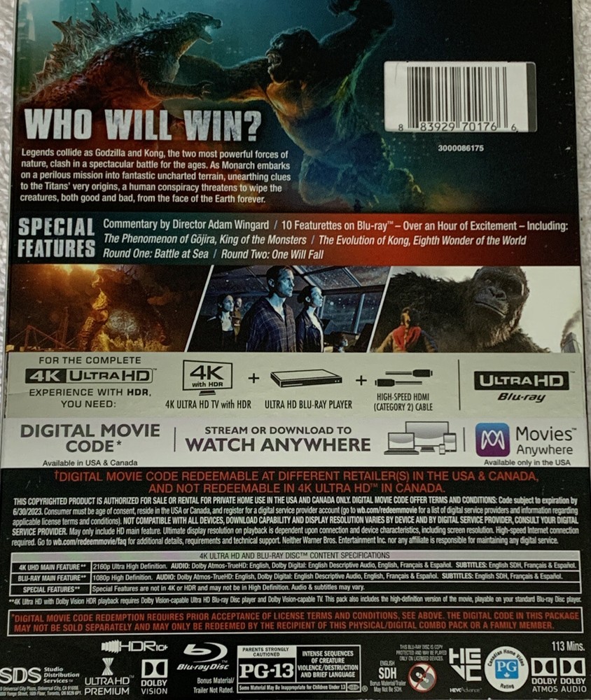 Godzilla vs. Kong (4K Ultra HD/Blu-ray, 2021, 2-Disc Set, Digital Copy) Cover works 100% guaranteed