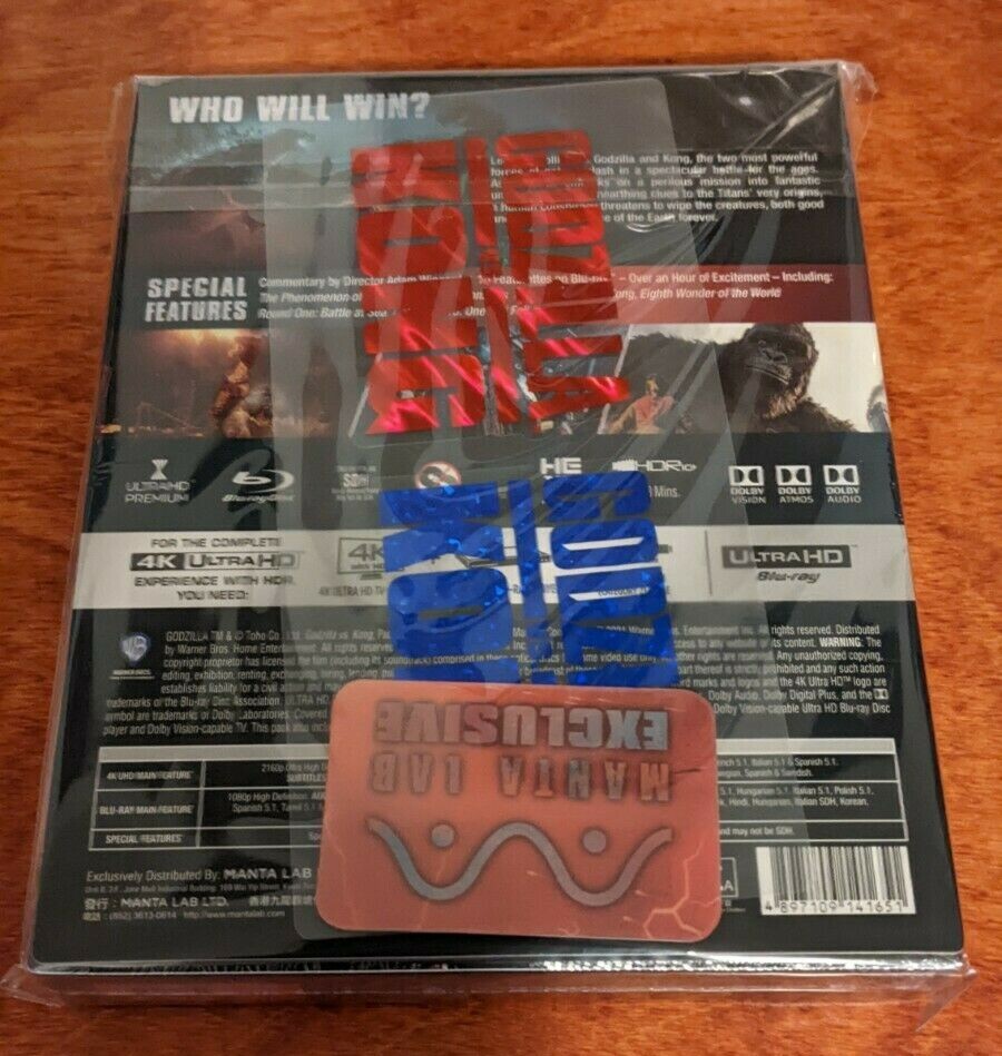 New & Sealed: Godzilla vs. Kong 4k UHD Manta Lab Fullslip ME 041. Unopened and in perfect physical condition. Will ship with care in bubble wrap and a cardboard box, via USPS in the US.