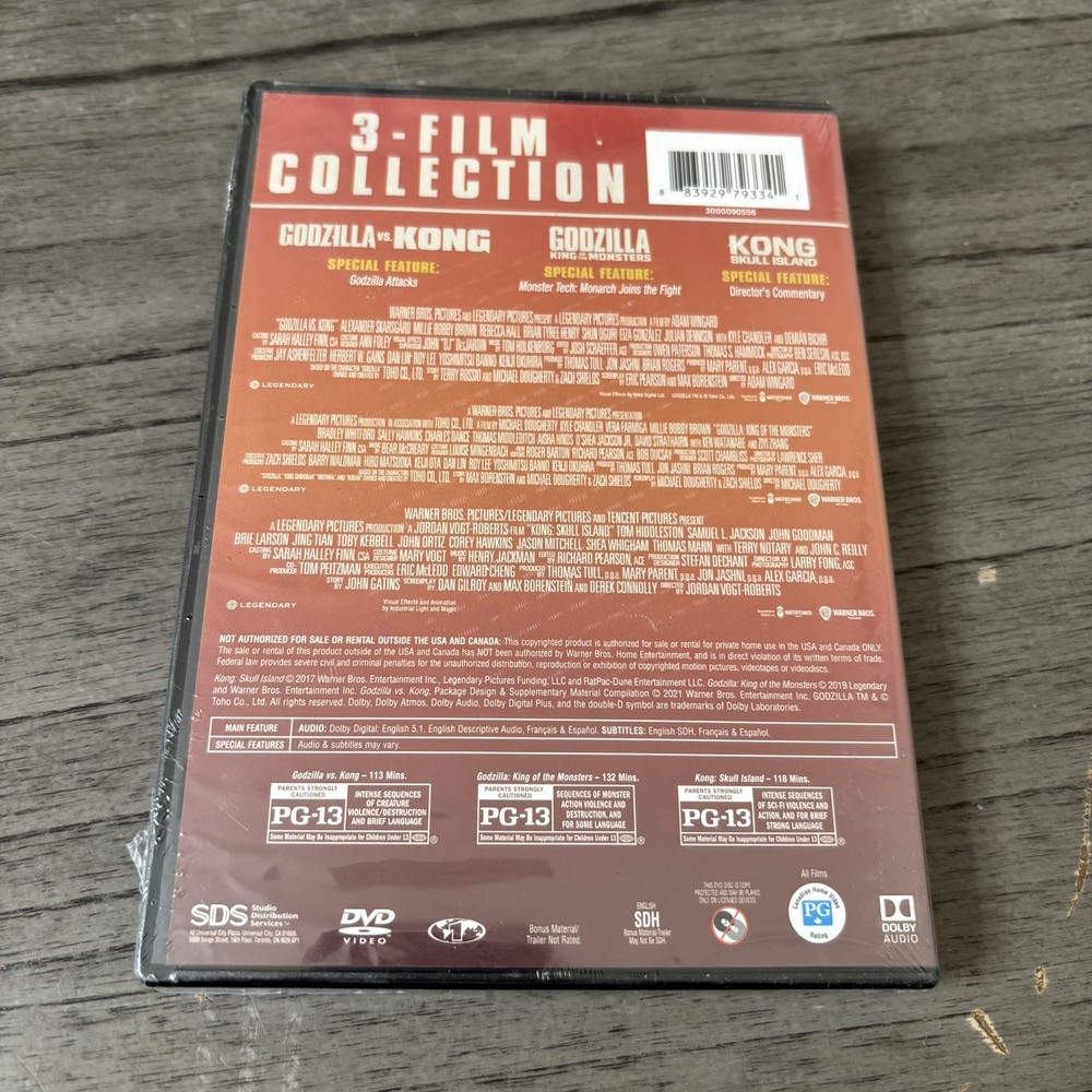 This DVD set is a must-have for monster movie fans! Packed with epic battles, stunning visuals, and non-stop action, all three films deliver thrilling entertainment. The English audio and PG-13 rating make it perfect for older kids and adults. Warner Home Video did a great job with the quality—crisp picture and solid sound. The tall/DVD case keeps the discs safe and looks great on the shelf. If you love giant creatures clashing in jaw-dropping showdowns, this collection won’t disappoint!