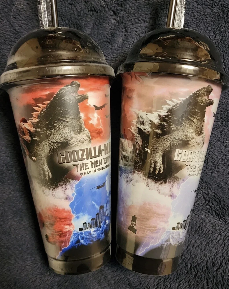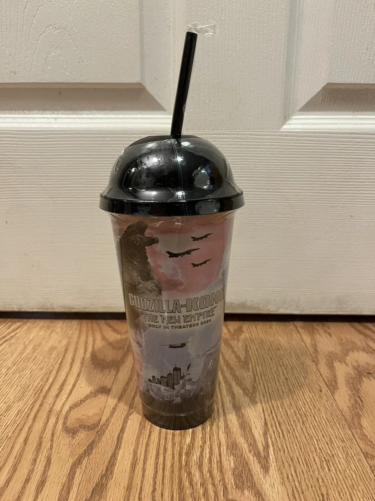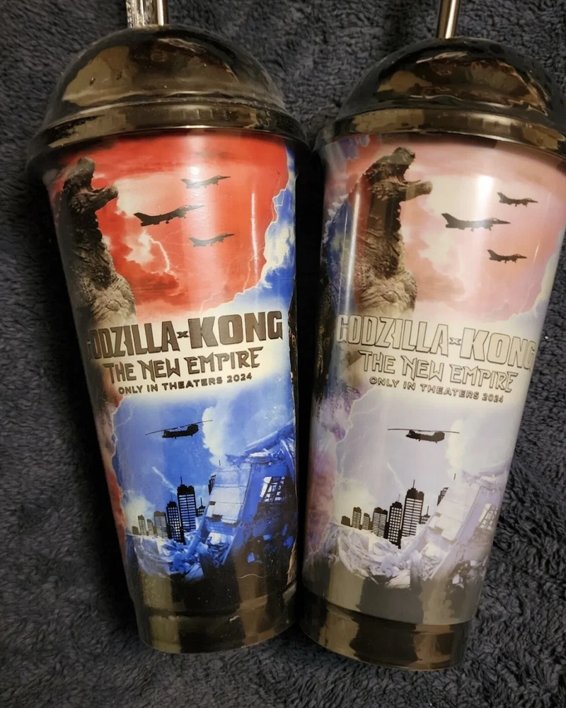 Experience the thrill of the ultimate battle between Godzilla and Kong with this limited edition color-changing soda cup and straw. Made in collaboration with Circle K and Cinemark, this collectible item is a must-have for any fan of the epic monster franchise. Featuring stunning artwork of the two iconic monsters, this cup is perfect for holding your favorite drink while watching the latest blockbuster hit. Whether you're a collector or just looking for a unique piece of memorabilia, this Godzilla vs Kong New Empire cup and straw is sure to impress. Don't miss out on your chance to own a piece of movie history! Includes one (1) soda cup.