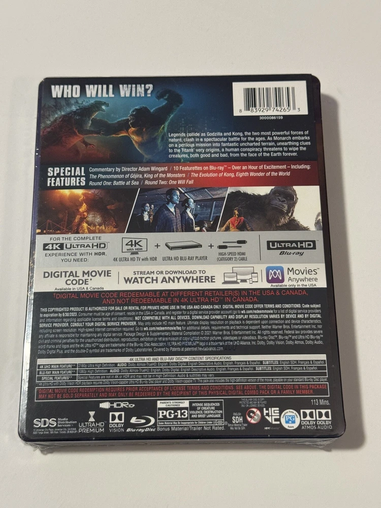 Brand new and unopened Godzilla Vs Kong Best Buy Steelbook. Includes 4K, Blu-Ray, and digital....