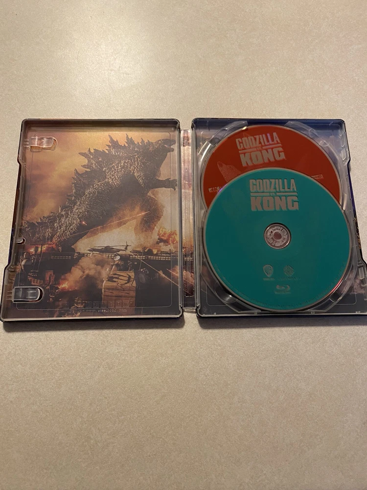 Experience the ultimate battle between two iconic creatures with the Godzilla vs Kong Steelbook Bluray/4KHD Combo. This is a must own for fans of the Godzilla and Kong franchises. Photos above are of actual product you will receive -all discs have been played on an X-Box One recently -WILL NOT COME WITH DIGITAL COPY CODE -discs do not have any scratches, dents, marks that would inhibit operation -case does not have any scratches, dents, tears -case has been sitting on media shelf -will be shipped next business day (holidays will require a little more time depending on postal office hours)