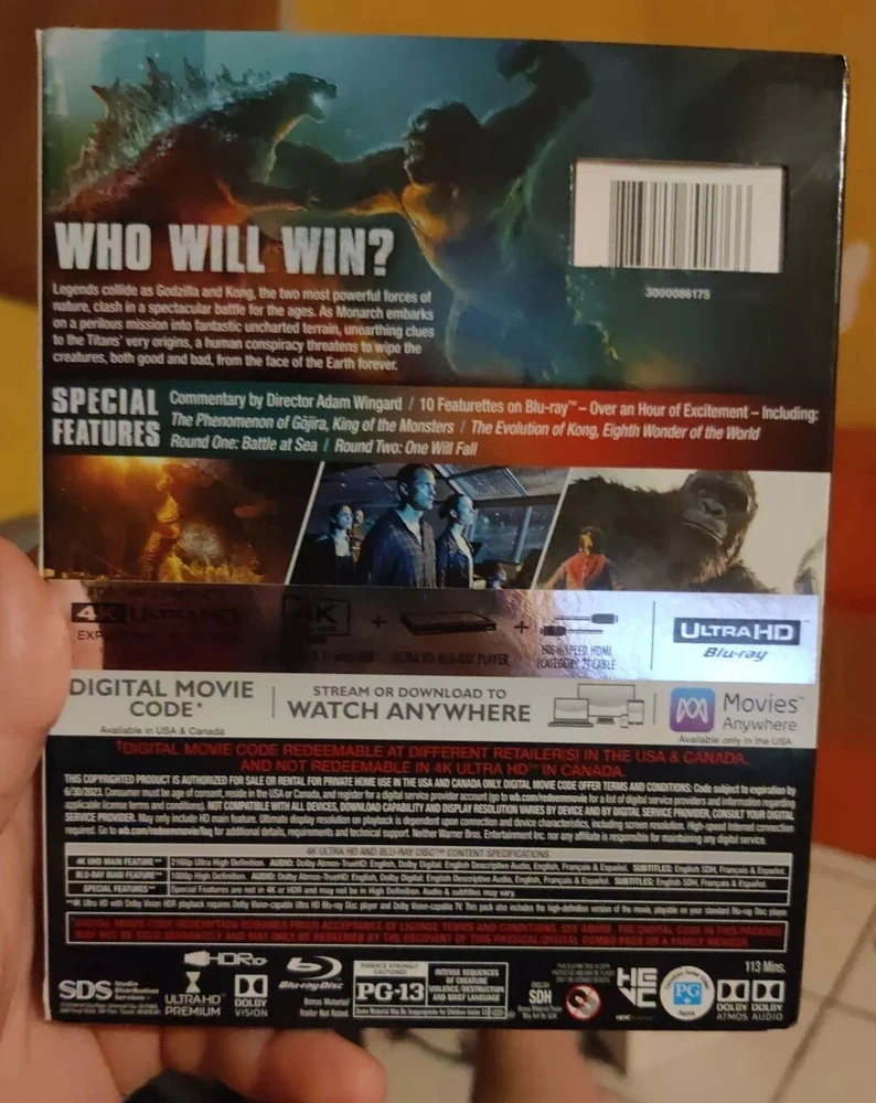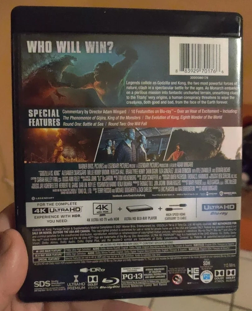 Godzilla vs. Kong with slipcover [4K Ultra HD + Blu-ray] & Kong Skull Island 4k is a science fiction horror movie released in 2021. The movie has a run time of 113 minutes and is rated PG-13. It is available in both 4K Ultra HD and Blu-ray formats and includes a slipcover. The movie is produced by Warner Home Video and comes with a bonus 4K copy of Kong Skull Island.