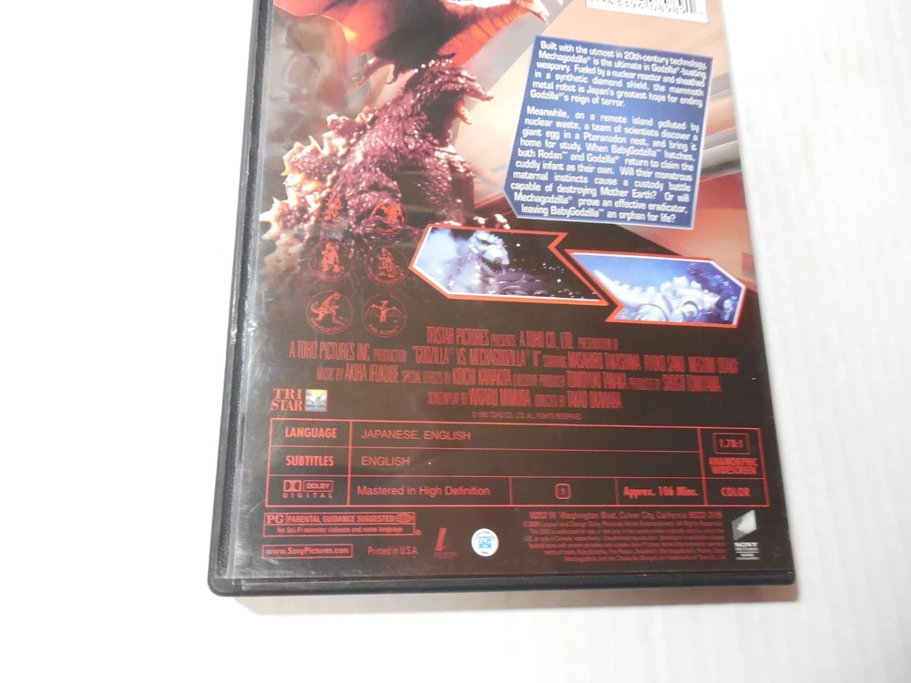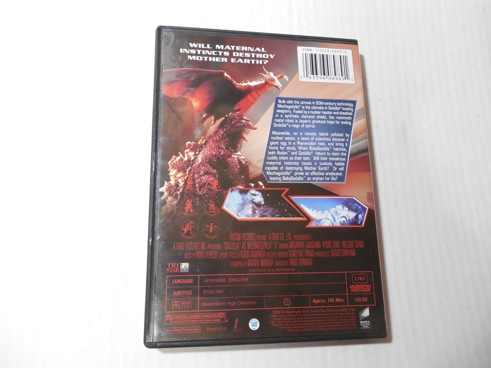 Godzilla vs Mechagodzilla II (1993) 5oth Widescreen OOP Tested DVD Great shape, Some light wear. Tested and plays great on all chapters Great shape, Some light wear. Includes Original Index Insert. Tested and plays great on all chapters. We will be happy to combine items to save on shipping if you buy more than one item. We only ship to official Ebay address. Sealed CDs & LPs DVDs, Toys only returned if in orginal sealed package as sold. Pictures are all original and of the exact Item you will receive. All our items are original, no fakes or bootlegs. We have lots of Cool Fun Stuff on Ebay. Just let us know and we will combine the items and charge one shipping charge for all items. Then we will refund the extra shipping. We only ship to official Ebay address. Comes from clean, Non Smoking home. We are family run online business. We strive to maintain the highest level of customer satisfaction. If on the rare occasion a buyer is dissatisfied with a purchase they have made from our store please contact us to discuss the matter BEFORE you leave feedback. Feedback for buyers is set up automatically and left once it has been left for us. Thank You Box (tested DV-35)