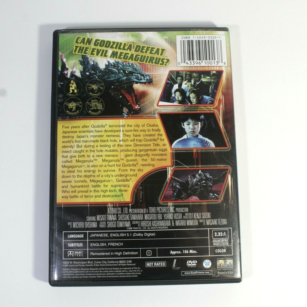 Godzilla vs Megaguirus DVD Ore -Owned -- Good Condition Please study the photos and ask any questions if you are unsure about anything. Please see Pictures for the Best Representation of Condition. Thank you for your purchase. We greatly appreciate your business. Feel free to contact us with any questions or concerns ; always, we are here to listen. In case of any discrepancy, contact us directly, and we will make it right. Please try to work out a solution with us. Your satisfaction is our priority. Thank you again so much for shopping in our store, and have a great week . We have no control on the shipping time once the item is shipped.