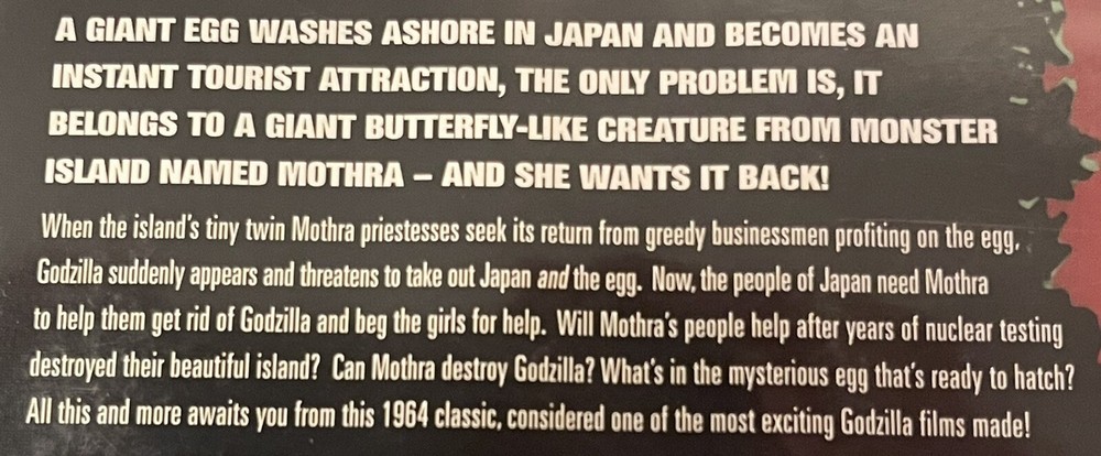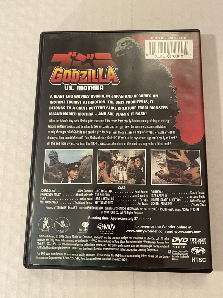 Experience the ultimate battle between Godzilla and Mothra in this classic movie from 1964. This DVD version features an English language track and a standard jewel case. Directed by Ishiro Honda and Inoshiro Honda, the movie stars AKIRA Takarada and is rated NR. The run time of this action-packed movie is 87 minutes and it is in DVD format with region code 1 (US, Canada...). The movie is brought to you by Toho Company, and it is perfect for fans of monster movies. Get ready to witness the epic battle of a lifetime with this must-have DVD.