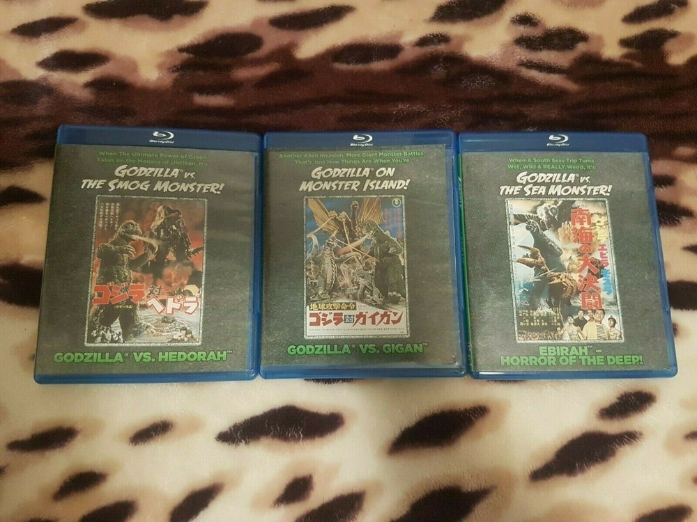 The following Blu-Rays are included 1) Godzilla vs The Smog Monster 2) Godzilla on Monster Island 3) Godzilla vs the Sea Monster Will ship to Canada/US only...