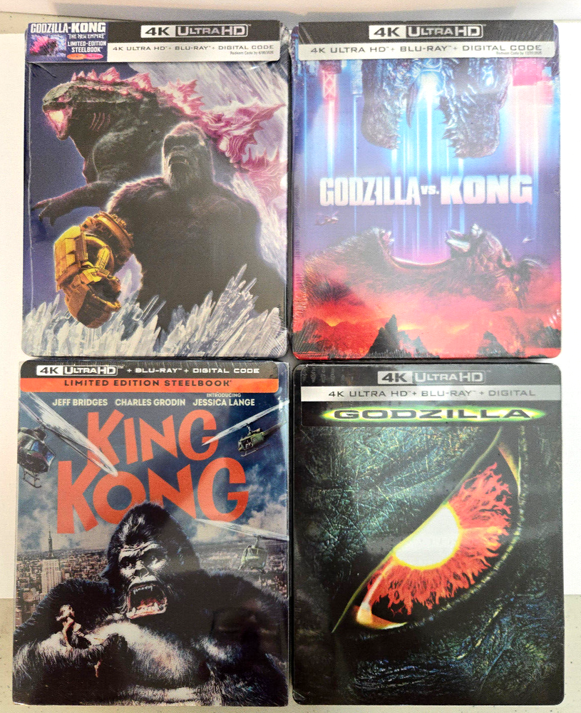 Own: Godzilla Vs. Kong 4K 4K + Blu-ray + Digital Copy Sold-Out Walmart Exclusive Steelbook & Godzilla x Kong: The New Empire 4K 4K + Blu-ray + Digital Copy Sold-Out Walmart Exclusive Steelbook & King Kong (1976) 4K 4K + Blu-ray + Digital Copy + Slip Cover Limited Edition Steelbook & Godzilla (1998) 4K 4K + Blu-ray + Digital Copy Sold-Out Best Buy Exclusive Steelbook No dents, no scratches! FACTORY SEALED U.S. RELEASES Ships in a padded box with a tracking number (in the U.S)