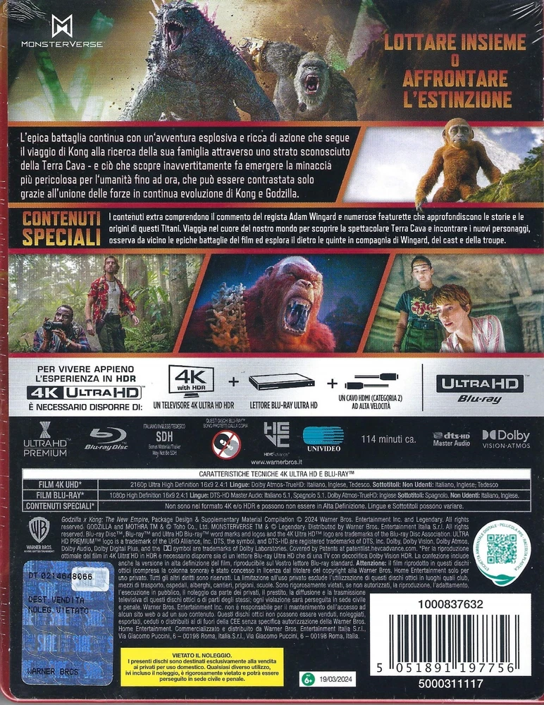 Brand New ! Factory sealed. Godzilla x Kong: The New Empire 2-Disc Limited Edition SteelBook ( 4K UHD + Blu-ray ). Region Free Italy Import Blu-ray. Includes Collectible Fight Version Artwork Type 2 SteelBook Case ! OOP / Sold-Out ! In perfect conditions... SteelBook & MetalPak Disclaimer: I have examined this SteelBook to the best of my ability prior to listing and have disclosed all visible imperfections (if any) in the description of the listing. Sometimes SteelBooks can have micro-dents or scratches or other flaws under the plastic wrap and/or the back information J-Card, Data Card or the SlipCover. There is no way for me to see or detect such imperfections and therefore I cannot be held responsible for any that you may find. If a disc comes loose during shipment, I cannot be accountable for this. NO Refunds will be accepted for opened items. Thanks…