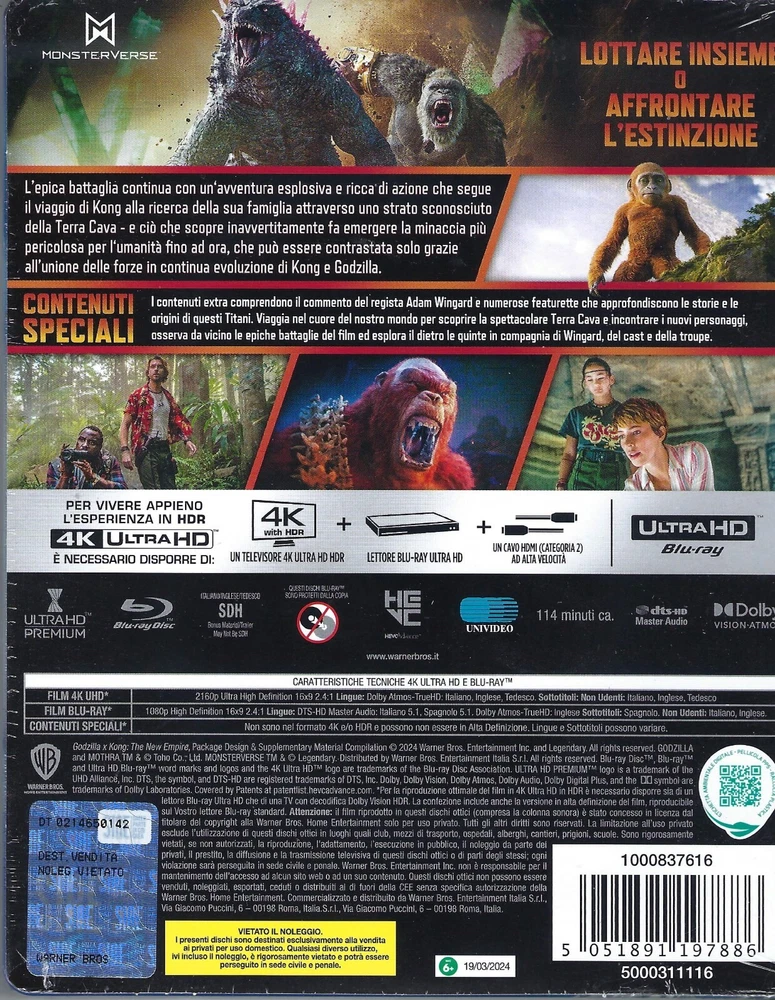 Brand New ! Factory sealed. Godzilla x Kong: The New Empire 2-Disc Limited Edition SteelBook ( 4K UHD + Blu-ray ). Region Free Italy Import Blu-ray. Includes Collectible Rise Version Artwork Type 1 SteelBook Case ! OOP / Sold-Out ! In perfect conditions ... SteelBook & MetalPak Disclaimer: I have examined this SteelBook to the best of my ability prior to listing and have disclosed all visible imperfections (if any) in the description of the listing. Sometimes SteelBooks can have micro-dents or scratches or other flaws under the plastic wrap and/or the back information J-Card, Data Card or the SlipCover. There is no way for me to see or detect such imperfections and therefore I cannot be held responsible for any that you may find. If a disc comes loose during shipment, I cannot be accountable for this. NO Refunds will be accepted for opened items. Thanks…