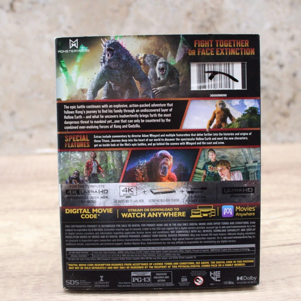The product is a limited edition Blu-ray of the movie "Godzilla x Kong: The New Empire" featuring creatures and monsters in an action-packed adventure within the sci-fi & fantasy genre. It is produced by Warner Home Video and comes with a digital code and slipcover, making it a sought-after collectible for fans of the Godzilla and King Kong franchises. The high-definition format of the Blu-ray ensures stunning visual quality for viewers to enjoy the epic battle between the two iconic monsters.