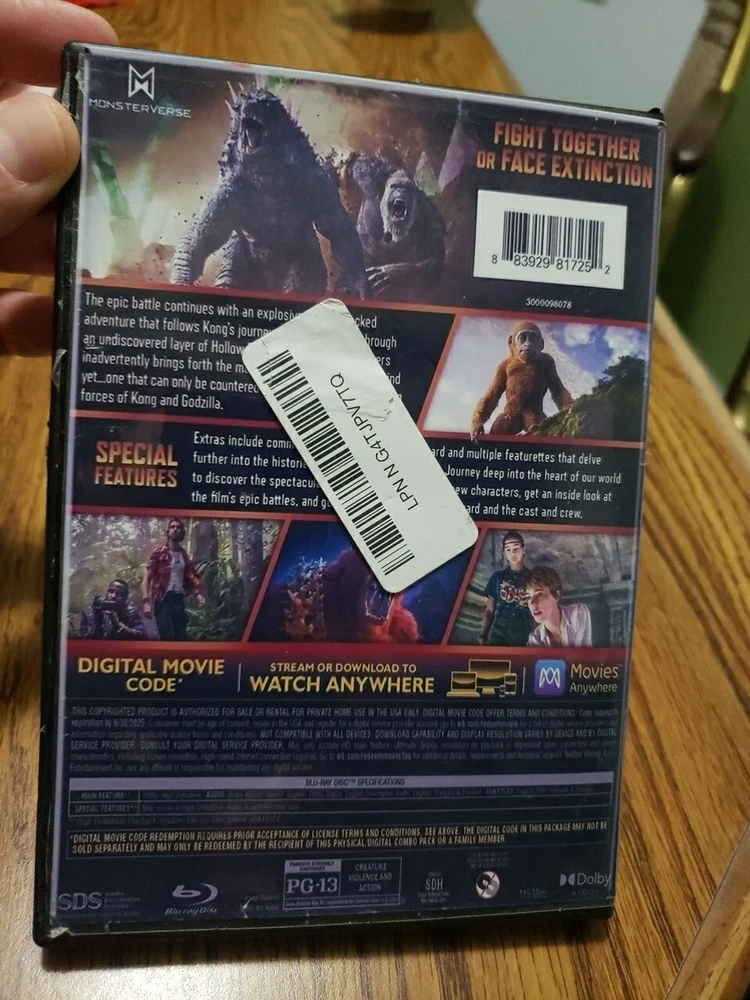 Experience the ultimate action-packed adventure with Godzilla x Kong: The New Empire on Blu-ray Disc. Directed by Adam Wingard, this rare version of the movie comes without a code unless it's on the disc when you watch it I'm not sure about the code, and features an all-star cast including Brian Tyree Henry, Dan Stevens, Eiza González, and Kaylee H. The Blu-ray format ensures stunning picture and sound quality, making you feel like you're right in the middle of the action. Rare version case with Blu-ray. Disc is like New but case has some scratches and wear. This science fiction film is perfect for fans of the genre and those who love to witness epic battles between iconic movie monsters. The movie takes place in the year 2024 and is rated PG-13. The Blu-ray Disc is compatible with Region A and is produced by Warner Home Video. Get your hands on this rare version of Godzilla x Kong: The New Empire today and witness the ultimate battle between two of the most iconic movie monsters of all time. Check out my Ebay store and other vintage hats, ties, boy scout items, clothing items, golf shirts, shoes, collectibles, clown figurines, toys, puzzles, board games, video games, albums, scrapbooking supplies, refill pages, baseball bats and gloves, graded Gijoe figures, sports jerseys and jackets, dvds, vhs tapes, betamax movies, cassettes, cds, records, audiobooks, 8 tracks, electronics, perfumes, Mary Kay products and more.
