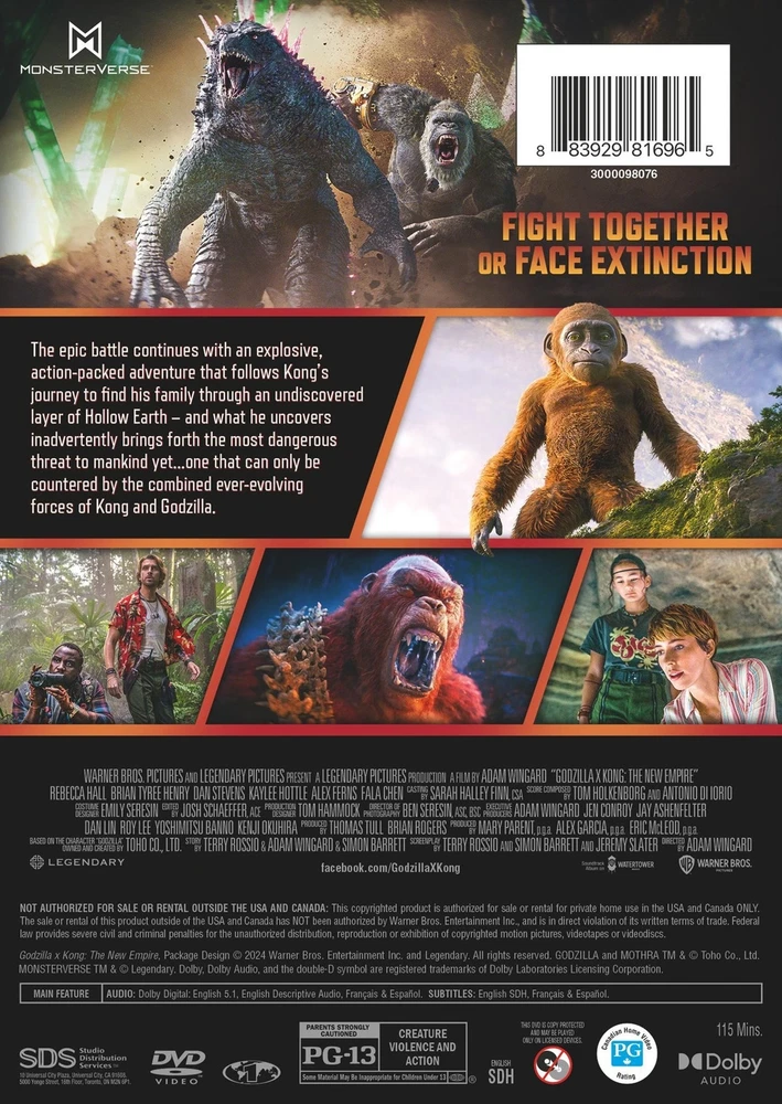 Godzilla x Kong The New Empire DVD NEW Product | GRUV Home DVD Blu-ray 4K Gruv > Godzilla x Kong The New Empire DVD NEW [Back] Godzilla x Kong The New Empire DVD NEW The epic battle continues! The cinematic Monsterverse follows up the explosive showdown of “Godzilla vs. Kong” with an all-new adventure that pits the almighty Kong and the fearsome Godzilla against a colossal undiscovered threat hidden within our world, challenging their very existence—and our own. “Godzilla x Kong: The New Empire” delves further into the histories of these Titans and their origins, as well as the mysteries of Skull Island and beyond, while uncovering the mythic battle that helped forge these extraordinary beings and tied them to humankind forever. Product Godzilla x Kong: The New Empire [DVD] Format: DVD Catalogue No: 1000833314 Studio: Warner Bros. Certification: PG-13 Release Date: 06/11/24 Region: Region 1 Duration: 114 minutes Discs: 1 Colour: COLOR Shipping *** FREE SHIPPING ON ALL ORDERS *** All items ordered before 11:00am EST will be shipped on the same day. Items ordered after 11:00am EST will be shipped on the following day. Orders placed after 11:00am EST on Friday will be shipped on the following Monday. If you have any questions regarding your order, please contact us How will I know when my order has been shipped? As soon as your order is sent from our warehouse you will be sent an email to confirm that it's on its way. Once my order has been shipped when will I receive it? Depending on your method of shipping, your timing will vary: Economy Shipping - you will receive your order in 3-10 days Expedited Shipping - you will receive your order in 1-5 days Next Business Day - you will receive your order in 1 Business day. This service is only available on orders placed Monday through Thursday The timeliness of service to destinations outside the contiguous U.S. may be affected by the limited availability of transportation. Due to the variability of transportation, Package Services and USPS Mail packages may take up to two to five weeks to reach Hawaii, Alaska, Puerto Rico and any U.S. Territories. This includes ZIP Codes with prefixes of 967 and 969 and those with the following prefixes: 995, 996, 997, 998, 999, 968, 006, 007, 008, and 009 Do you charge for shipping? *** FREE SHIPPING ON ALL ORDERS *** Economy Shipping - USPS Media Mail - FREE - 3 to 10 business days Expedited Shipping - FedEx Ground - $5.99 - 1 to 5 business days Next Business Day - FedEx Overnight - $14.99 - 1 business day PLEASE NOTE THAT ORDERS PLACED USING FEDEX CANNOT BE DELIVERED TO PO BOXES What do I do if I have not received my order? If your order does not arrive within 14 days please contact us so that we can investigate with the delivery company. One of the items is missing from my order. What do I do? Sometimes items that are purchased on the same order may arrive to you on different days. We will send you an email to let you know when each item is on its way. What happens if I am not at home to accept my delivery? Most of our products do not require you to be at home to be delivered. In the event that you have ordered products which will not fit in your mailbox, and you are not home to accept the delivery, then the postal service will follow their usual procedure. This usually means a card is left to notify you of an attempted delivery and the item will be held at your local sorting office. For items sent via FedEx, a card should also be left to allow you to arrange a redelivery or collection. Which countries do you deliver to? We deliver to the United States and US territories. Do you deliver on Public Holidays? Holidays are not considered working days, so we don't include these in our estimated delivery times. In this instance you should expect delivery on the next working day following the Holiday. Returns Here at GRUV Entertainment we want you to be 100% happy with your purchase, and we'll do everything we can to make sure you are. If you would like to return a product to us, please contact us. How do I return an item? To arrange a return please contact us and we will be more than happy to arrange this for you. All you need to tell us is which items you wish to return and the reason why. We will then issue you a unique Returns Authorization (RA) number and the return instructions. I have received my item, but I no longer want to keep it? If you are unhappy with your purchase, please contact us within 30 days of receiving the item for a full refund - please note that DVDs, Blu-rays & 4K Ultra HD that have been opened or have had their shrink-wrap removed are not eligible for return. The cost of shipping to return a product you no longer require will be paid for by the person returning the product and will require a Returns Authorization (RA) number. The RA number will be given to you by our customer services team. I have received my item but it's damaged / faulty. What should I do? If your item arrived damaged or is faulty, we will make this right as soon as possible, either by sending a replacement item to you or refunding your account. If we ask for the item to be returned to us, then GRUV Entertainment will pay for the cost of the return via a pre-paid label. In the unlikely event that your order is received damaged or faulty, all you need to do is contact us within 30 days of receiving the item and we will provide you with the relevant returns information. I have received an item that I did not order. What should I do? If you received an item that you did not order, you can return it to us within 30 days of receiving it for a full refund or replacement. If we ask for the item to be returned to us, then GRUV Entertainment will pay for the cost of the return via a pre-paid label. When will I receive my refund/replacement? We will process your refund / replacement as soon as your item is received back into our warehouse. Replacements are subject to availability and, if not available, a refund will be g