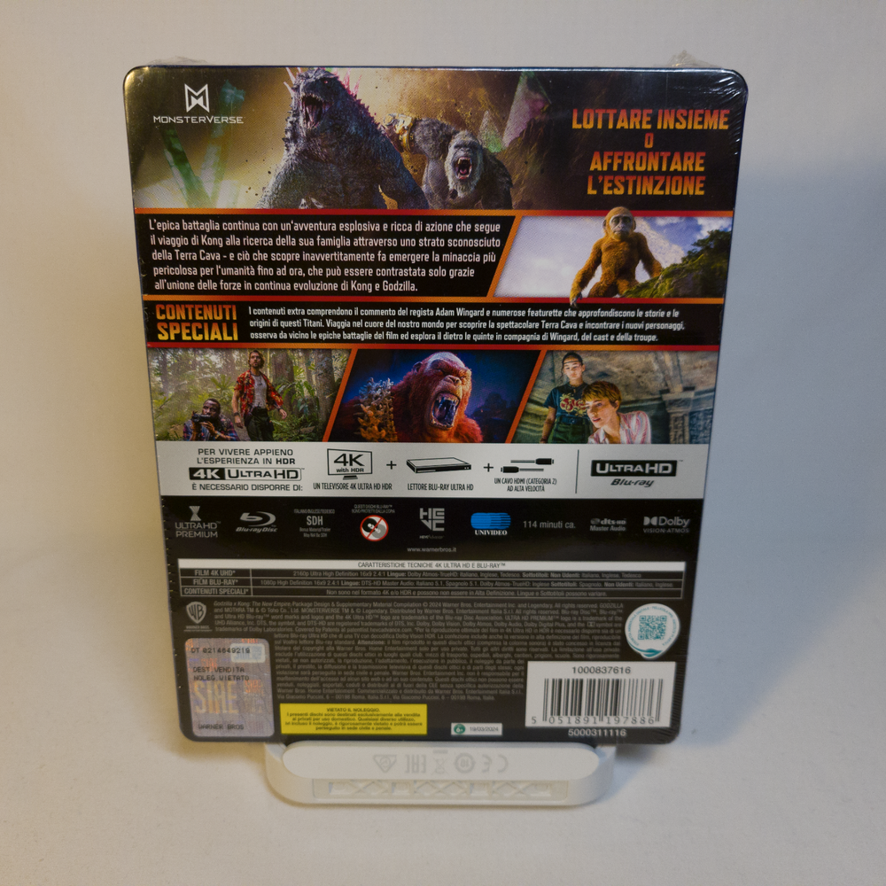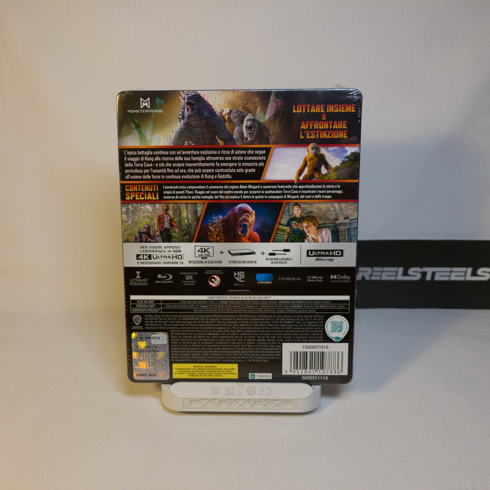 | ReelSteels| | Godzilla x Kong: The New Empire | | Steelbook | Version 1 | | IT | 4K Ultra HD + Blu-ray | ~Brand New & Factory Sealed~ -Release Date: Jun 26, 2024- **Notes:** **-The 4K/Blu-ray are Region Free.** Product Specs Region Playback: 4K Blu-ray Disc: Region Free 2K Blu-ray Disc: Region B Video: Codec: HEVC / H.265 Resolution: Native 4K HDR: Dolby Vision & HDR10 Aspect Ratio: 2.39:1 Original Aspect Ratio: 2.39:1 Audio: English: Dolby Atmos & Dolby TrueHD 7.1 Italian: Dolby Atmos & Dolby TrueHD 7.1 German: Dolby Atmos & Dolby TrueHD 7.1 Czech: Dolby Digital 5.1 Polish: Dolby Digital 5.1 Slovak: Dolby Digital 5.1 Subtitles: English SDH (Subtitles for the d/Deaf and hard of hearing) Italian SDH, German SDH, Czech, Korean, Mandarin (Simplified), Polish & Slovak Discs & Packaging: 4K Ultra HD: 1 BD-100 Blu-ray Disc: 1 BD-50 Steelbook Policies and Disclaimers SteelBook Care & Inspection: ~ Every item listed has been inspected through a multi-step process to determine if there are any defects. If there are any visible imperfections, they will be described in as much detail as possible, and will have photos showing the problem. For example, if there is a loose disk, the plastic wrapping is badly torn, or has any type of dent. SteelBook Disclaimer & Return Policy: ~ As stated above, the SteelBooks have been inspected to the best of our ability. There is sometimes a chance that a SteelBook may have tiny dents/scratches/other types of issues underneath the plastic wrap and J-Card/SlipCover. Even with all of our systems in place, there is no way to detect these defects other than opening the item, so as a seller we cannot be held responsible for any issues underneath. ~ Our return policy is that no refunds will be issued once an item has been opened and unwrapped. Please inspect your SteelBook before opening it if you're considering a return. Any purchase is an agreement to these terms, and are also in line with the following eBay return policy. Feedback & Questions ~ If you have any questions, just ask. We strive to provide the best customer service and your feedback is important to us, so if you have any questions or problems, please contact us first.