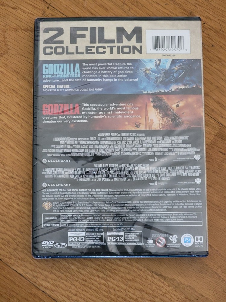 This DVD features the 2007 horror movie "Godzilla / Godzilla: King of the Monsters" directed by Daniel Minahan. Starring Sarah Jessica Parker, Kristin Davis, Cynthia Nixon, and Kim Cattrall, the movie is rated PG-13 and has a sub-genre of biography. The aspect ratio is 1.85 and the DVD is region code 1 (US, Canada...). The movie is in English language and was released in 2007 by Warner Home Video. The DVD is in a widescreen edition and is not a modified item. It is a great addition to any horror movie collection. (Bin 153)