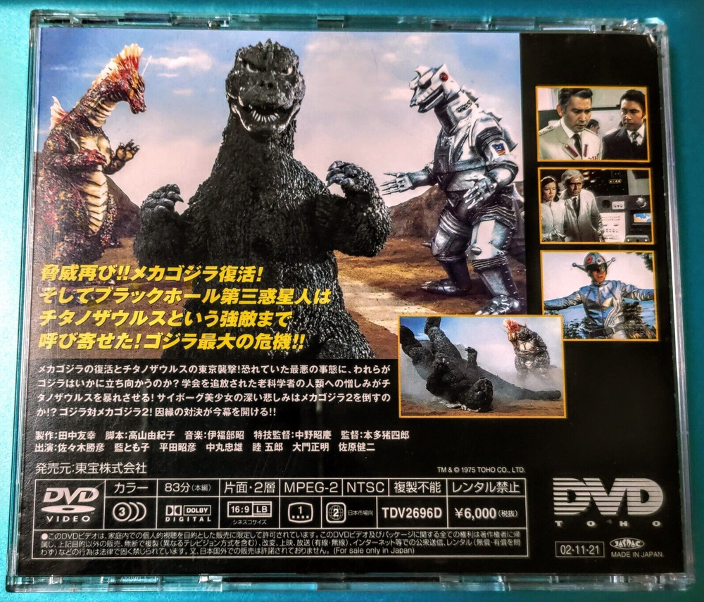 Godzilla【 Terror of Mechagodzilla 】King of Monsters, DVD With Obi, Toho Japan 1975, Very Good Condition Description <Japanese Audio Only>There are scratches and cloudiness on the plastic case. The DVD is beautiful with no scratches. Playback confirmed. Discount For customers who purchase multiple items, please rest assured that we will refund the difference in shipping costs. Customers who purchase 3 or more items will receive a 10 % discount. Shipping Due to global issues, we cannot ship via SAL. We always send the item with a tracking number. So please place an order without any concern on delivery. You can always track the delivery status. Shipping is only available to the address registered in eBay. If you want us to send another address, please change your address on eBay and then place an order. Shipping is available from Monday to Friday. Weekends are not available because freight (shipping) companies are closed. We do not mark merchandise values below value or mark items as “gifts” – Japan, US and International government regulations prohibit such behavior. If there is a remote charge for your address, we will charge you for additional shipping. About Importer's Obligation Import duties, taxes, and charges are not included in the item price or shipping cost. These charges are the buyer's responsibility. Please check with your country's customs office to determine what these additional costs will be prior to bidding or buying. Thank you for your understanding.