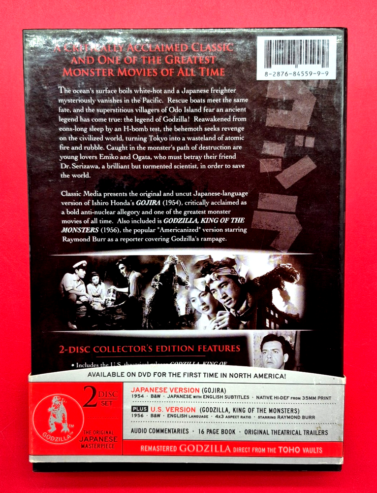 Gojira (DVD 2006 Japanese / American Versions) Godzilla Outer case has some light wear, inner case holder has some glue residue where the security magnet was. Japanese version disc is in like new condition, American version disc has some light scratches but plays well with no issues. Booklet is in like new condition. See pics for what is included and overall condition. Any questions please feel free to ask. Combined shipping is available. Any Digital Codes are not guaranteed to work. All items are photographed and video recorded during packing process for Seller and Buyer protection. All orders not paid within 4 days are automatically cancelled. Thank you for looking and Stay Safe. (All instances of fraud are reported to the home city of the Buyers Police Dept. and Internet Crime Complaint Center)