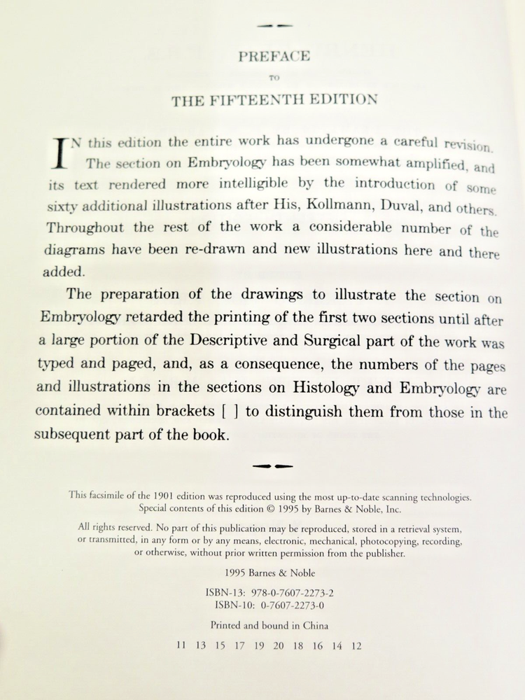 Gray's Anatomy 15th Edition 1995 Barnes & Nobles Excellent condition. Tight binding. Stain and scribble free. Please see pics for detail. Fast shipping!! Most items ship within one business day. If you have any questions or concerns about an item, please contact me before purchase. In the odd event that you are unhappy after receiving your purchase, please contact me so that I can rectify the situation for you promptly. Thank you!!