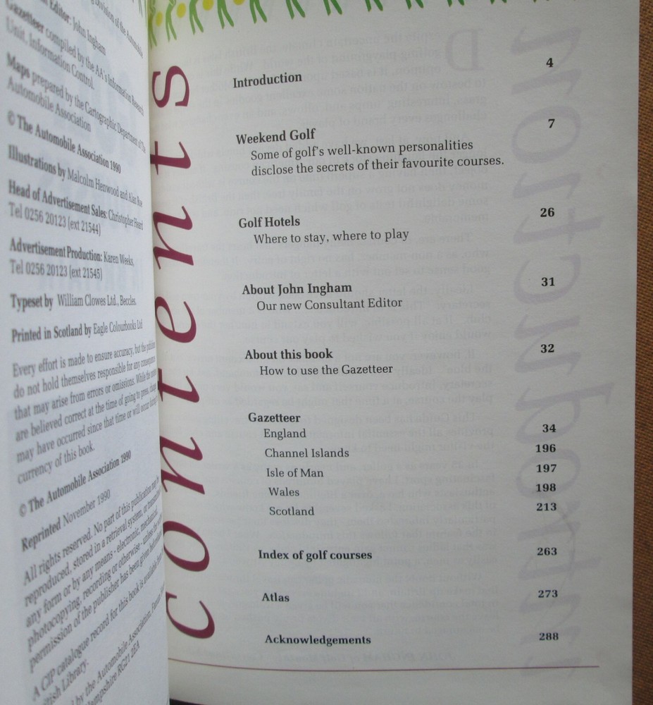 Guide to Golf Courses in Britain Author: Automobile Association Publication: Automobile Association Edition: 1990 Reprint Binding: Hardback - Leather Bound Condition: Mint Description: Annual guide to golf courses and golfing. Please note: NO 1st TIME BIDDERS Will post internationally by courier. UK £5 / Europe (EU) £12.50 / Rest of World (and non EU) £21.50 Sold from my personal collection by a seller with 100% positive feedback since 2002