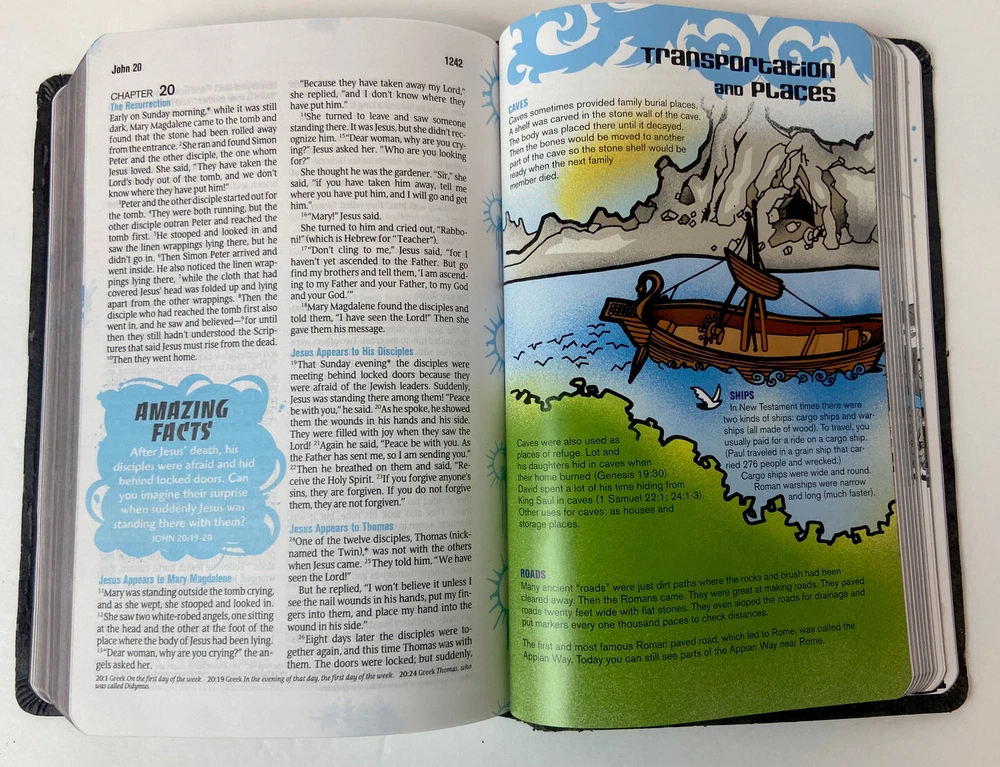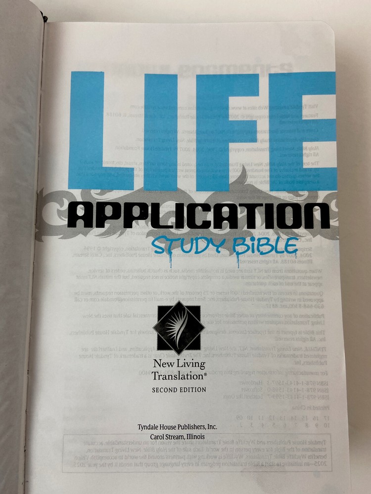 Guys Life Application Study Bible Onyx Leather Like 2nd Edition 2007 Tyndale ISBN: 9781414315997 Copyright Date: 2007 Preowned in good condition, cover has some bends, pages look unused. See pictures for details and condition. The "Guys Life Application Study Bible" features designs and notes created uniquely for guys 11 and up. This Bible was developed and written by experienced youth and children's writers, ministers, and experts to engage today's tween- and younger teen-aged guys. The notes help them learn to think biblically about real issues they face, such as self-esteem, friendship, and peer pressure. Based on the bestselling "Life Application Study Bible." FEATURES: Age-appropriate notes, including: Freeze Frame--A first person narration of Bible characters about their own experiences and lessons learned What Now?--Unique, authentic scenarios about boys that are written in the third person, in a conversational format. Designed to leave readers to make their own decision about a real-life situation, while being pointed to scripture for answers. I Survived!--Personal stories of how older teens handled situations tweens are currently facing. I'm Not the Only One!--Gives a lighter perspective on embarrassing situations. Amazing Facts--Interesting tidbits of information from the Bible designed to hook readers to scripture. Fashionable cover designs 16 pages of full-color illustrations walk the reader through Bible-time daily life and customs. Item Properties: Genre: Bibles Target Audience: Juvenile Audience Translation: New Living Translation Produced By: Tyndale House Publishers Staff, Livingstone Corporation Staff Illustrated: Yes Ships USPS Media Mail Buyer Pays Shipping. Please check out my other listings.
