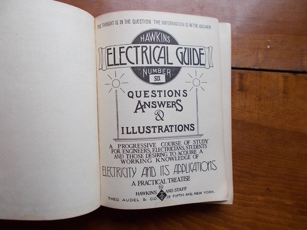 HAWKINS ELECTRICAL GUIDE NO. 6 Q & A & Illustrations 6.5"x5", this is a real treasure!!! PROFUSLY ILLUSTRADED: Epic book: Please take a look at the pictures for the best description. A photo is as good as a thousand words -used, vintage item-THIS IS THE one THAT YOU WILL GET.. leather cover is fragile and coming undone. GREAT BOOK -Shipping is USPS. I can combine shipping on orders. Request combined shipping or you can pay & I will reimburse shipping, usually an additional item ships for an additional dollar. Media mail. This is a vintage book. Please view all photos for condition, details, and any flaws, usage, etc. I encourage all buyers to examine all photographs prior to purchase. All sales are final and -AS IS- condition. I will carefully wrap & ship your item as quickly as possible. Thank you for your business. I appreciate and value you as a customer. I will be adding inventory as often as possible, I have a lot. If you collect something specific, let me know & I will list it it I have it : ANTIQUE SUPER STORE (please add it to your FAVORITES ) so you will see many, rare and historic items , such as: tokens, bottles, books, postcards, and so much more. With Gratitude Always, Antique Super Store.