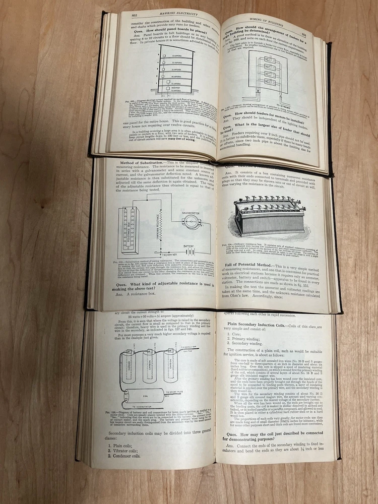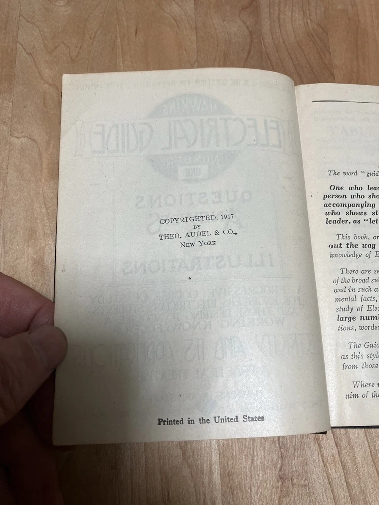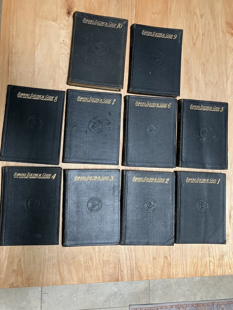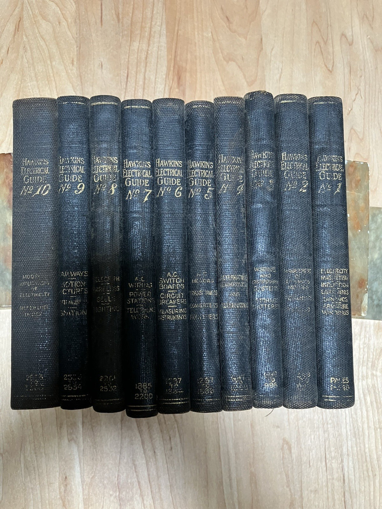 Selling a complete set of 1917 revised second edition Hawkins Electrical Guides 1-10. Condition: Used as is. Original as found. Covers have normal wear. 3 books inside covers have folds. No writing, folds, or staining found in the pages. see photos for condition. Measurements: approximately 6 1/2" x 5". If you have questions, please ask before bidding/purchasing. Please Note: Many of our items are pre-owned and sold AS IS Condition . PLEASE VIEW ALL PHOTOS AS WE CONSIDER THEM TO BE PART OF THE CONDITION DESCRIPTION. I will combine shipping for multiple purchases. Please let me know before paying for shipping costs.