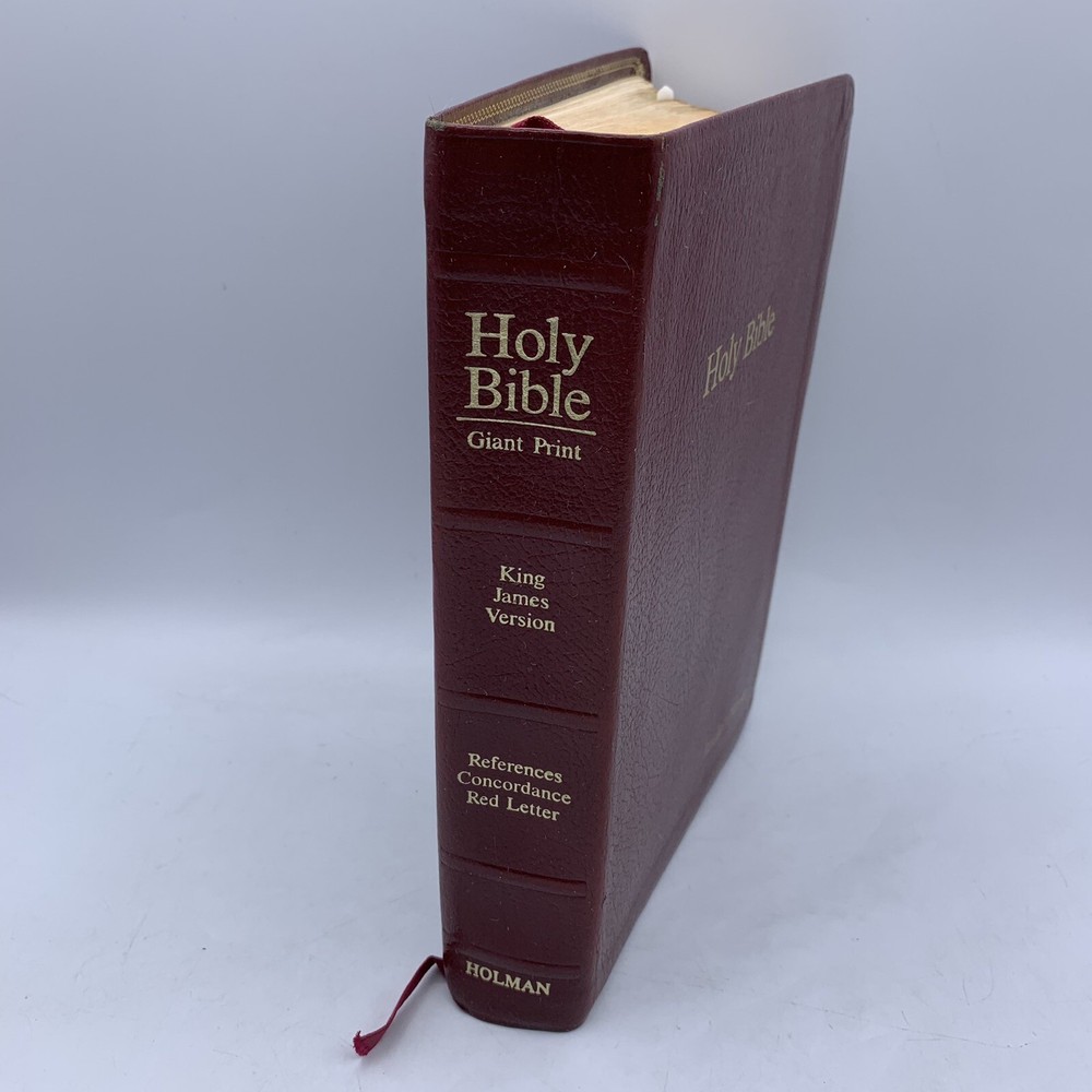 HOLMAN 1982 Holy Bible Giant Print KJV Reference Concordance Red Letter Edition. Has name on front cover, writing on a few pages, has wear - See pictures...