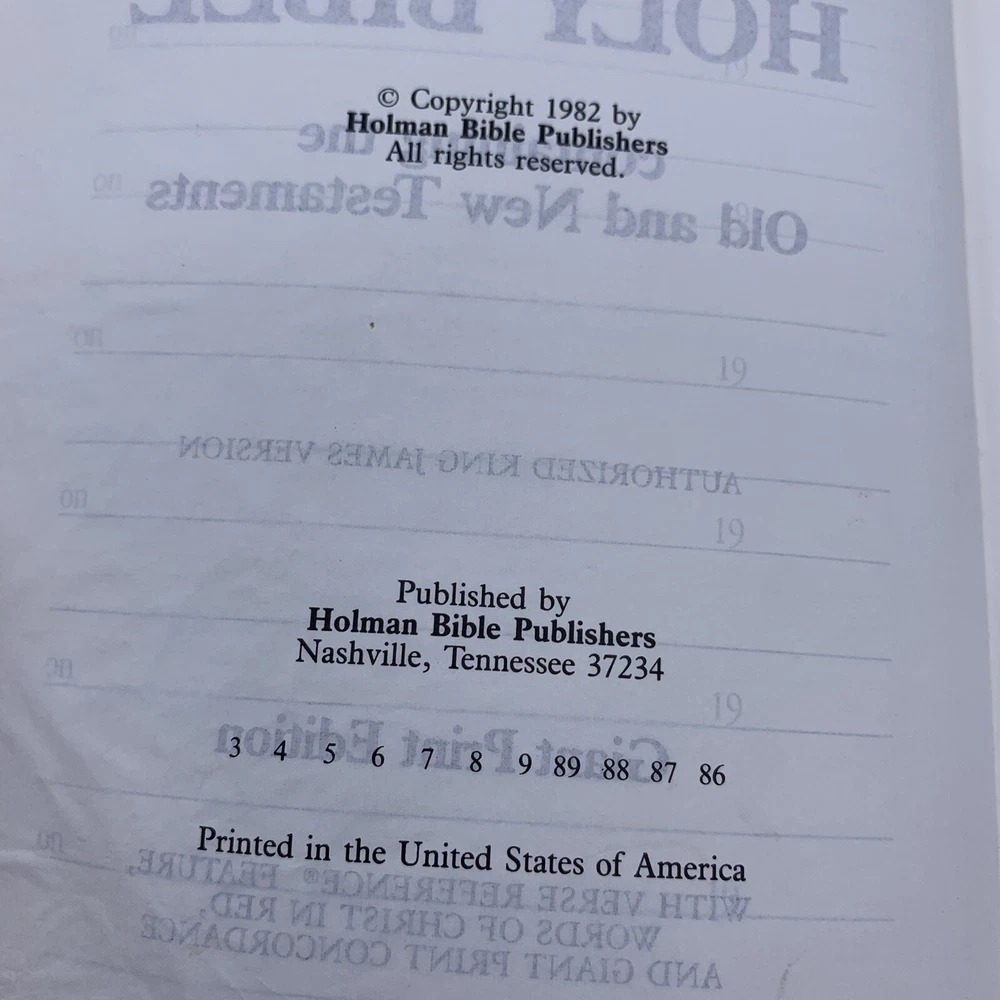 HOLMAN 1982 Holy Bible Giant Print KJV Reference Concordance Red Letter Edition. Has name on front cover, writing on a few pages, has wear - See pictures