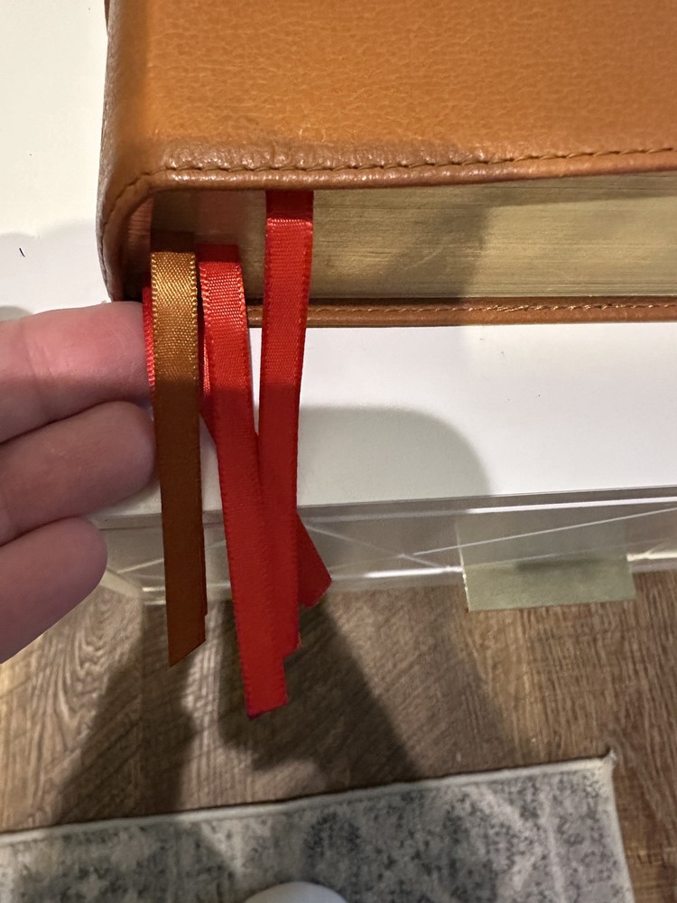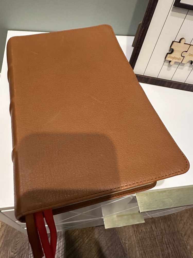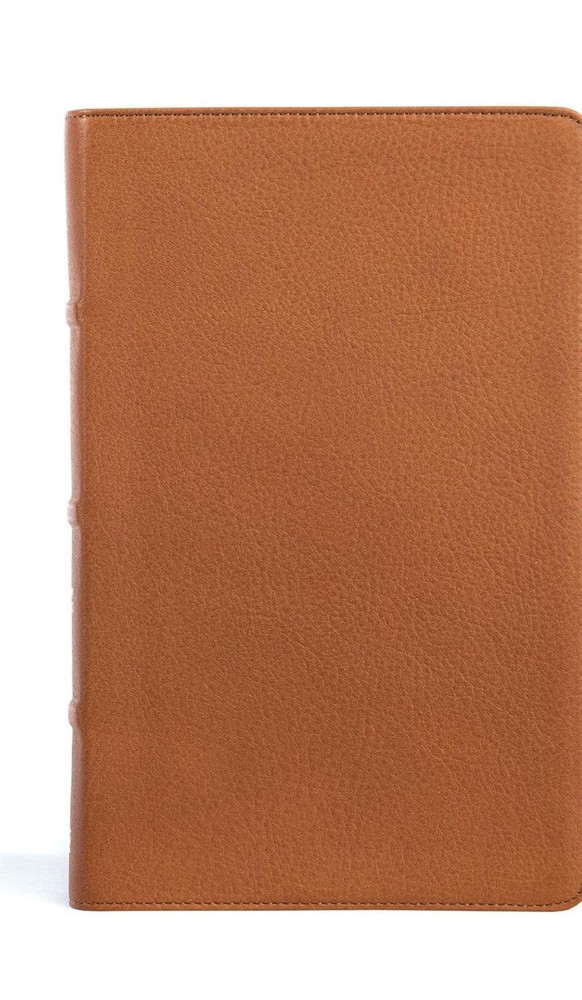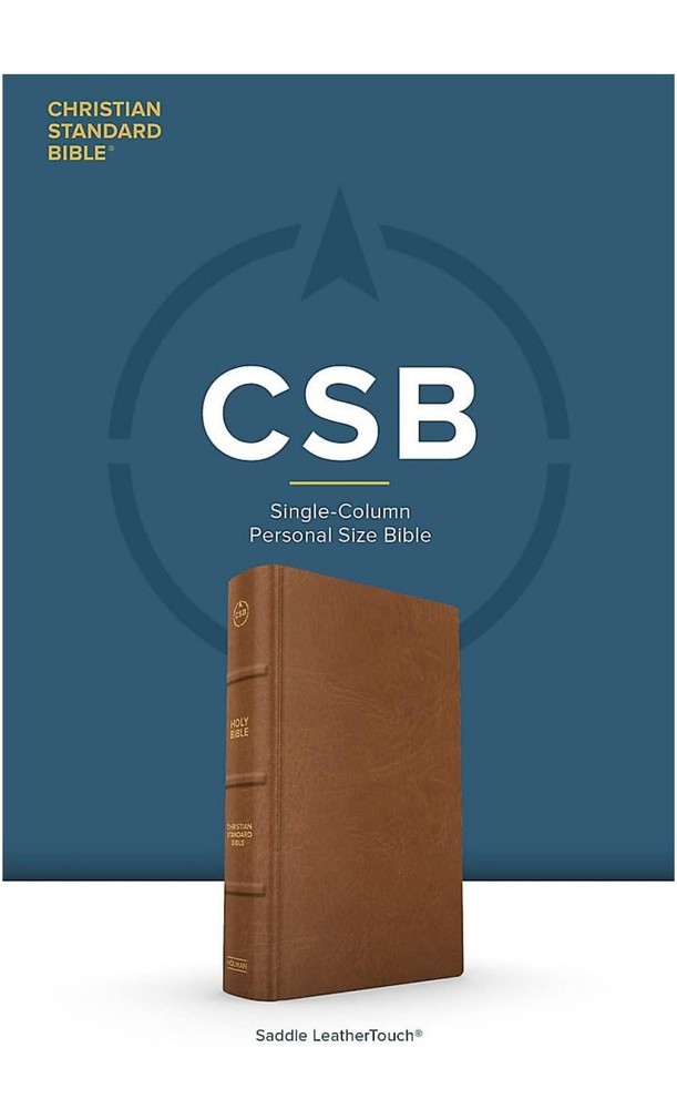 The CSB Single-Column Personal Size Bible provides a wonderful single-column reading experience in a convenient personal trim size that is perfect for devotional reading, personal study, or use at church. FEATURES: Convenient personal trim size Durable Smyth-sewn, lay-flat binding Single-column text format Topical subheadings 10-point type size Black-letter text Gilded page edges Ribbon marker Presentation page for gift-giving Full-color maps 5.375” x 8.5” page size The CSB Single-Column Personal Size Bible features the highly readable, highly reliable text of the Christian Standard Bible® (CSB). The CSB captures the Bible’s original meaning without sacrificing clarity, making it easier to engage with Scripture’s life-transforming message and to share it with others. Includes addition page marker ribbons as shown in picture.