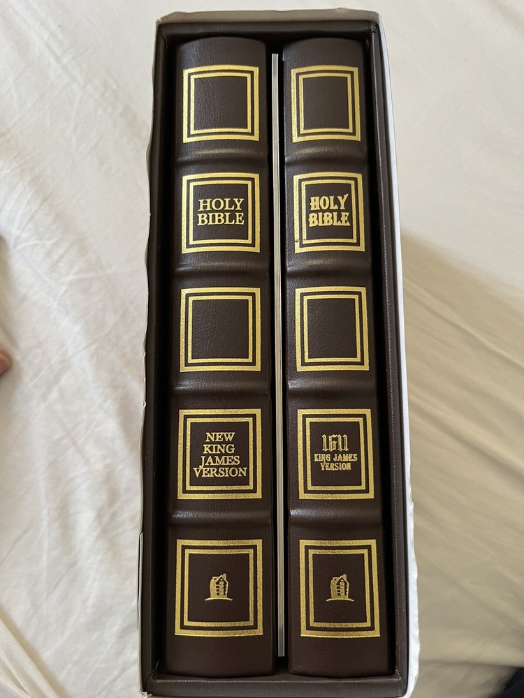 HOLY BIBLE 400TH ANNIVERSARY BOX SET BONDED LEATHER KJV 2 BOOKS IN SLIPCASE NEW....