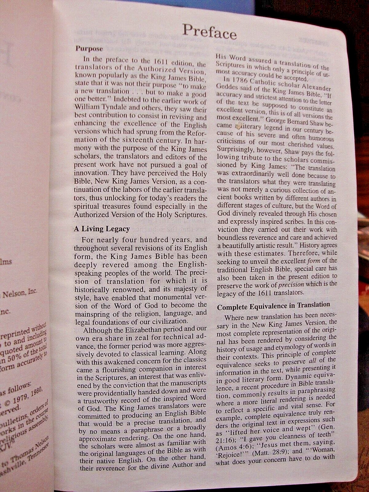 This King James Compact Text Bible is a vintage piece that was published in 2001 by Nelson Incorporated and Thomas. It is a bonded leather format with a red letter edition and a concordance. The Bible has 1106 pages and is in English language. The Bible is perfect for adults who are interested in religion and spirituality. It is a non-fiction narrative type and is categorized under Books and Magazines. The Bible is not personalized, signed, or inscribed. It is a great travel size and was published in the United States.