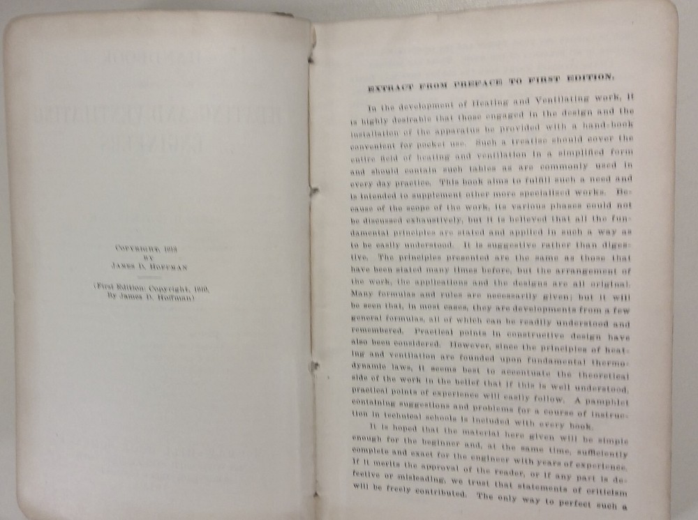 A rare second edition 1913 HVAC handbook, still in readable condition. (First edition was 1910.)
