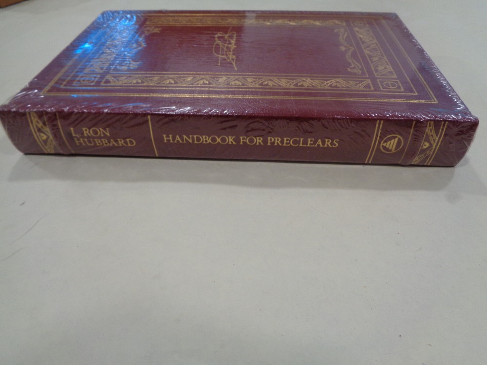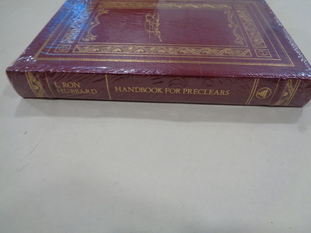 Handbook for Preclears by L. Ron Hubbard Leather Limited Edition SEALED NEW Handbook for Preclears by L. Ron Hubbard The book features a unique look at Scientology. There is lots of interesting reference and historical documentation, a very neat book with lots of details. The book measures approx. 9 ½ by 6 ½ inches. The hardcover is sealed and new, never opened in original shrinkwrap, slightly dusty from long storage. The spine end has light wear on the ends. The boards and corners are good with some gentle wear. The hinges and spine are firmly attached. The pages are bright and clean, book is nice Inventory: 1023FG021