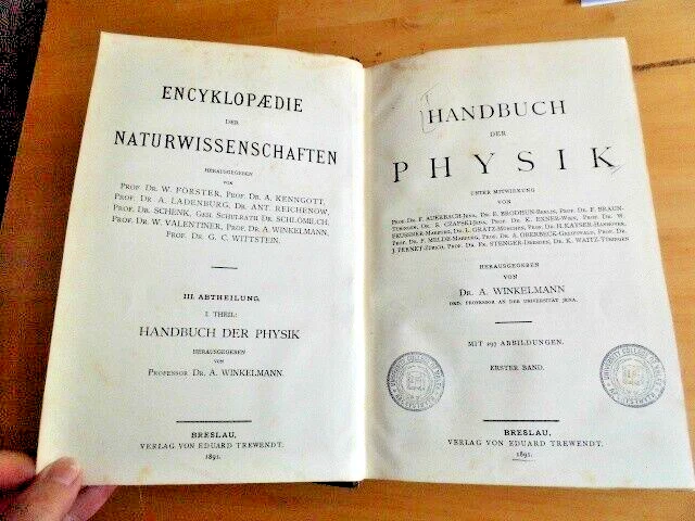 Handbuch Der Physik Vol. 1 Adolph Winkelmann 1891 Hardback Trewendt...