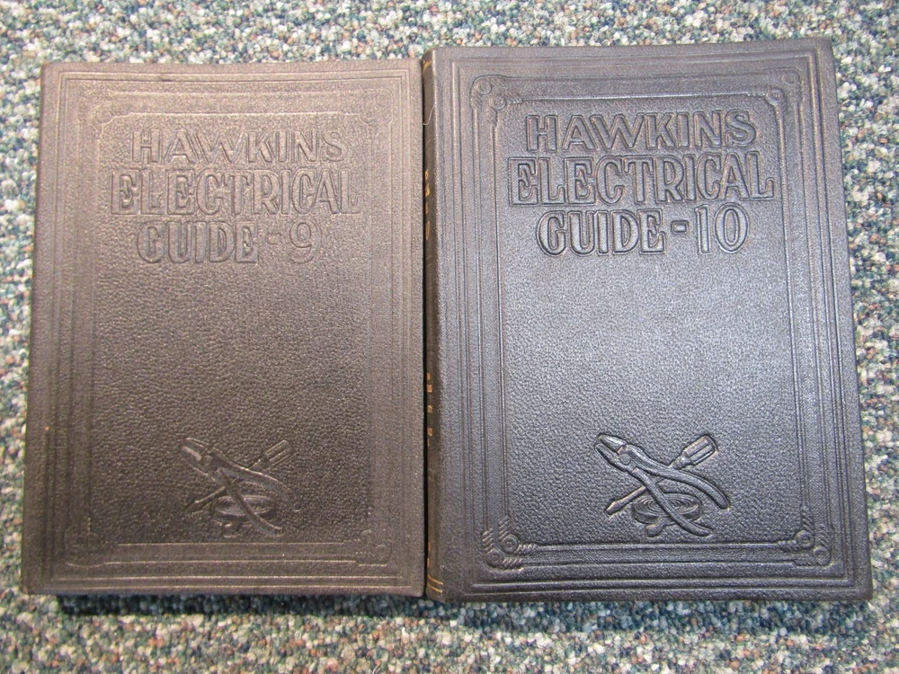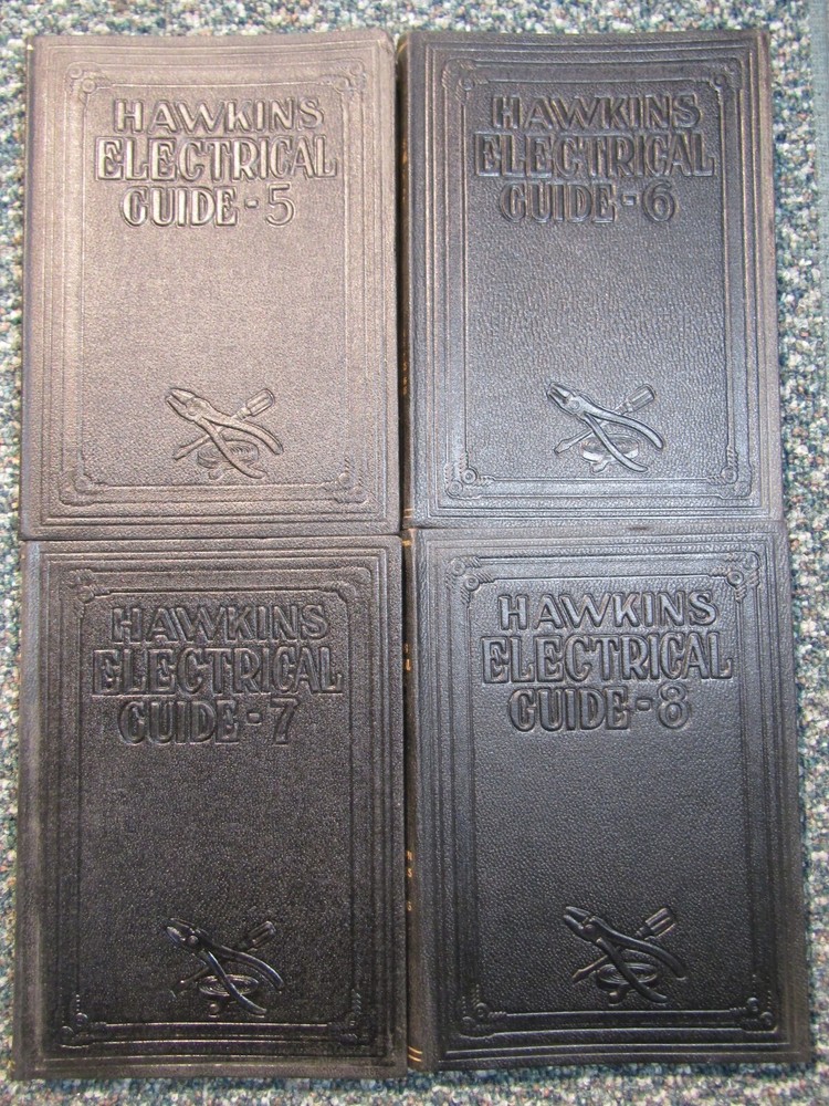 Hawkins Electrical Guide ~ Set of 10 volumes with Guilded Edges ~ 1917, 1927 Here for your consideration is a nice set of Hawkins Electrical Guide books . Volume 1 is from 1917 and is embossed on front cover with revised 2nd Edition, the other 9 volumes are labeled inside "1927 Impression" and are embossed on the front cover with pliers, a screwdriver and tape. All have Gold-Guilded Edges. Included: Volume 1: Electricity, Magnetism, Induction, Experiments, Dynamos, Armature Windings ~ 1917 Volume 2: Management of Dynamos, Motors, Instruments, Testing ~ 1927 Volume 3: Wiring and Distribution Systems, Storage Batteries ~ 1927 Volume 4: Alternating Currents, Alternators ~ 1927 Volume 5: AC Motors, Transformers, Converters, Rectifiers ~ 1927 Volume 6: AC Switch Boards, Circuit Breakers, Measuring Instruments ~1927 Volume 7: AC Wiring, Power Stations, Telephone Work ~ 1927 Volume 8: Telegraph, Wireless, Bells, Lighting ~1927 Volume 9: Railways, Motion Pictures, Automobiles, Ignition ~ 1927 Volume 10: Modern Applications of Electricity, Reference, Index I n good shape and all there. Binding is good. Normal wear and tear. P ictures tell the rest of the story and are part of the cosmetic description . WYSIWYG Please ask any questions before you bid to avoid any communication problems or disappointments. Your purchase will be carefully packed and promptly shipped to your confirmed eBay address. Why Buy From Elderly Electronics: We are experienced sellers on eBay since 1999. Please check our feedback and eBay rating. Items shipped within 24 hours of sale and usually same day if order received by 2 pm CST. We don't mess around. 30-day money back guarantee from the time you receive your item(s) so you may check them out. Positive feedback left for you once payment is received as you have done your part. I will strive for positive five-star feedback from you by describing the item accurately, packing item so it will arrive safely and then sending you the tracking information when the item ships all of which we will do. Thank you for your time while visiting our auctions