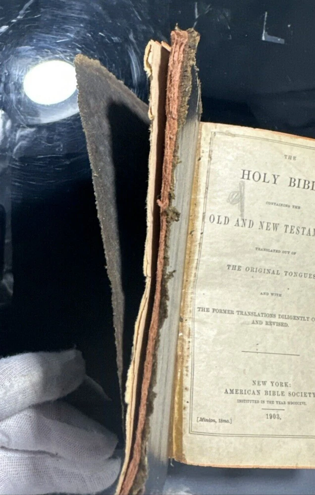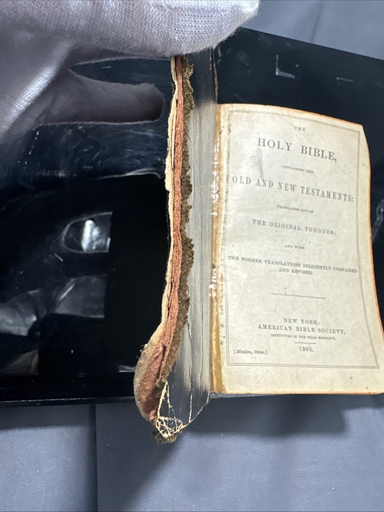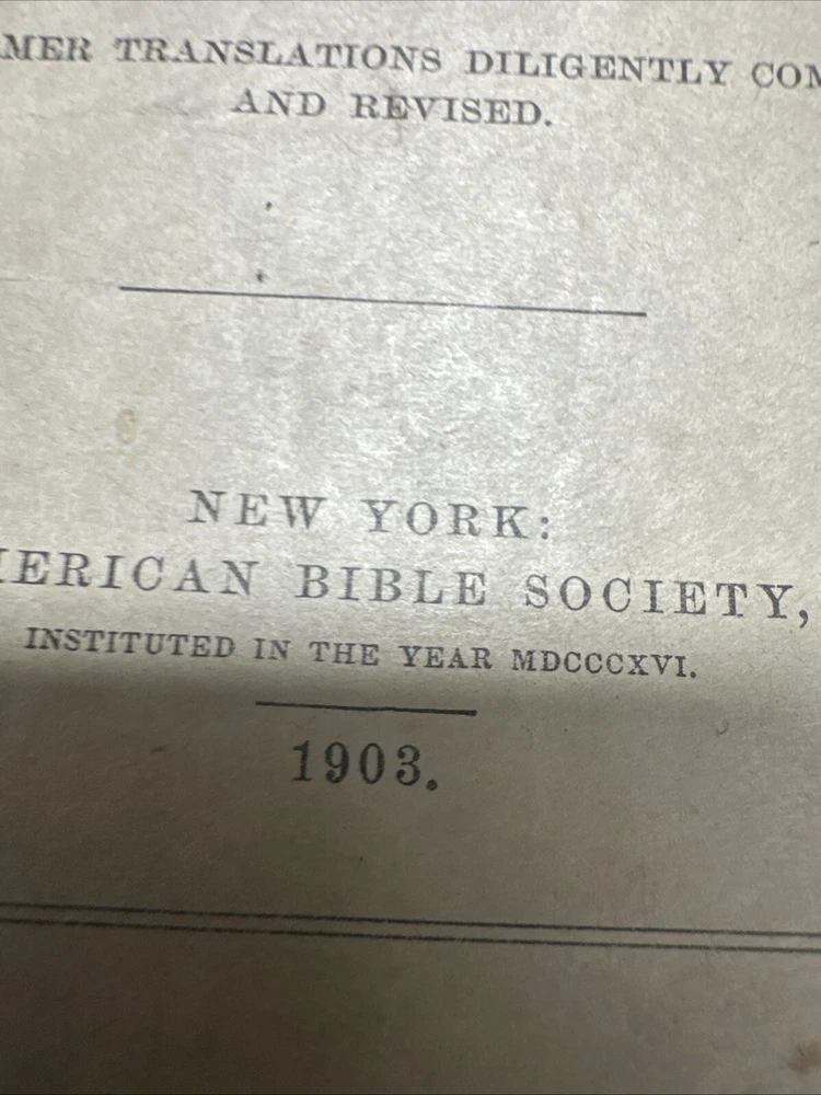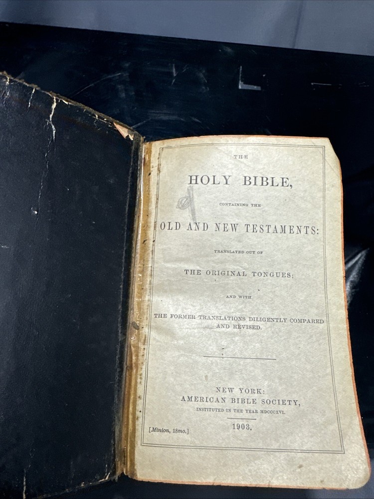 Holy Bible 1903 the Original Tongues American Bible Society **Binding Loose *see Antique with Damage Condition Binding Is Loose as Is a Few Pages See All Pictures for Descriptions. Item pictured is the exact item you will receive. . ▪ Please view the pictures for best description. ◦ Any questions I am here to help, I am only one person but your satisfaction is important to me. I am not an expert,I show what I find, please view all photos. Shipping to buyers listed address only Damage: If your item is received damaged, it is your responsibility to provide the seller with photos of Damage Including Box and Label and Packing Material.in order for the seller to file a damage claim with the shipper. You will need to retain the box/envelope and all shipping materials.